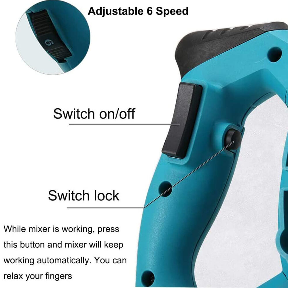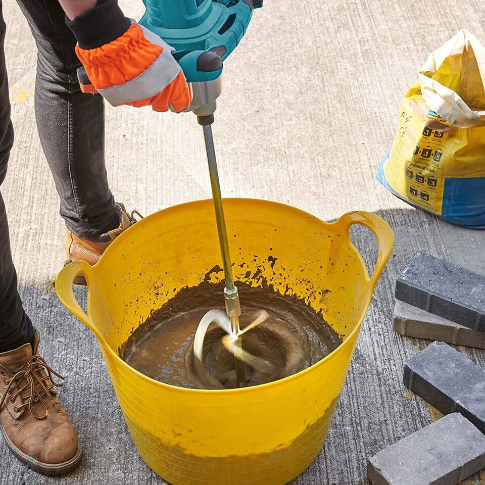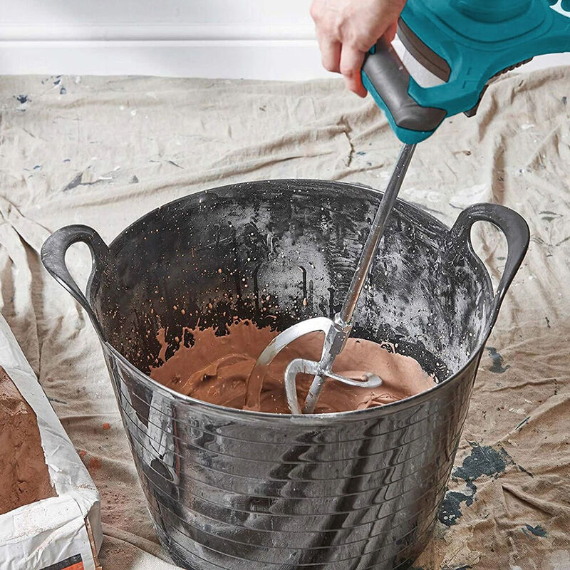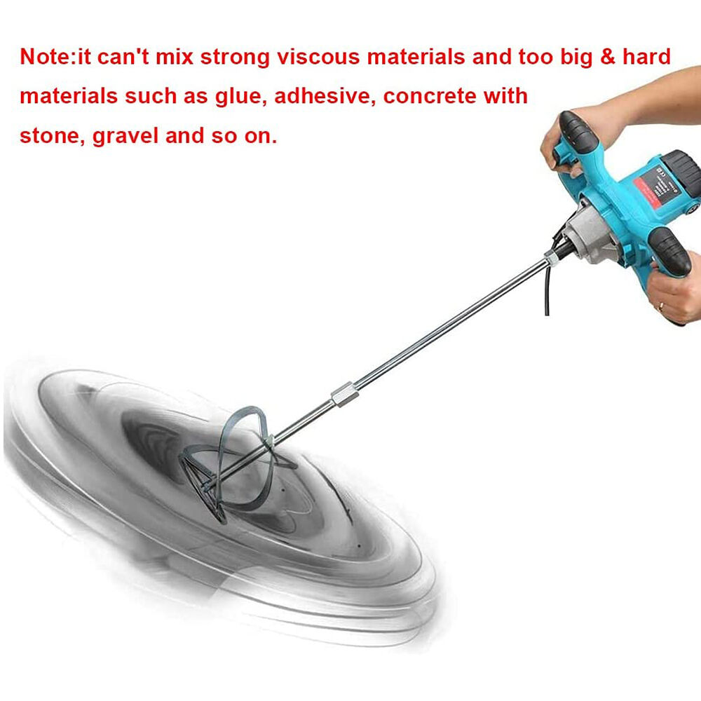 This electric mixer drill is presented as a handy tool for various mixing tasks in painting, construction, and DIY projects.