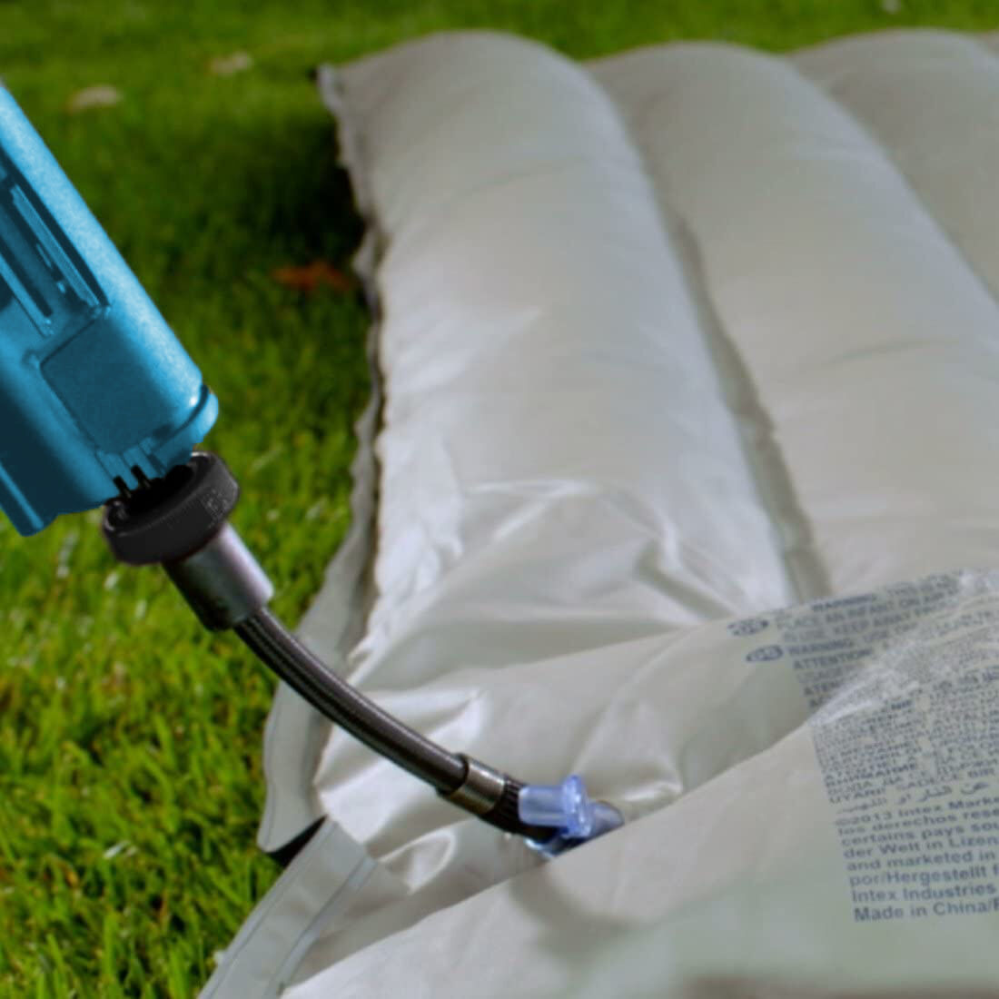 Recargable: Funciona con una batería de iones de litio de 12 V y 1300 mAh, fácil de conectar y desconectar. También incluye un adaptador para coche para usarlo cuando la batería del inflador esté baja.