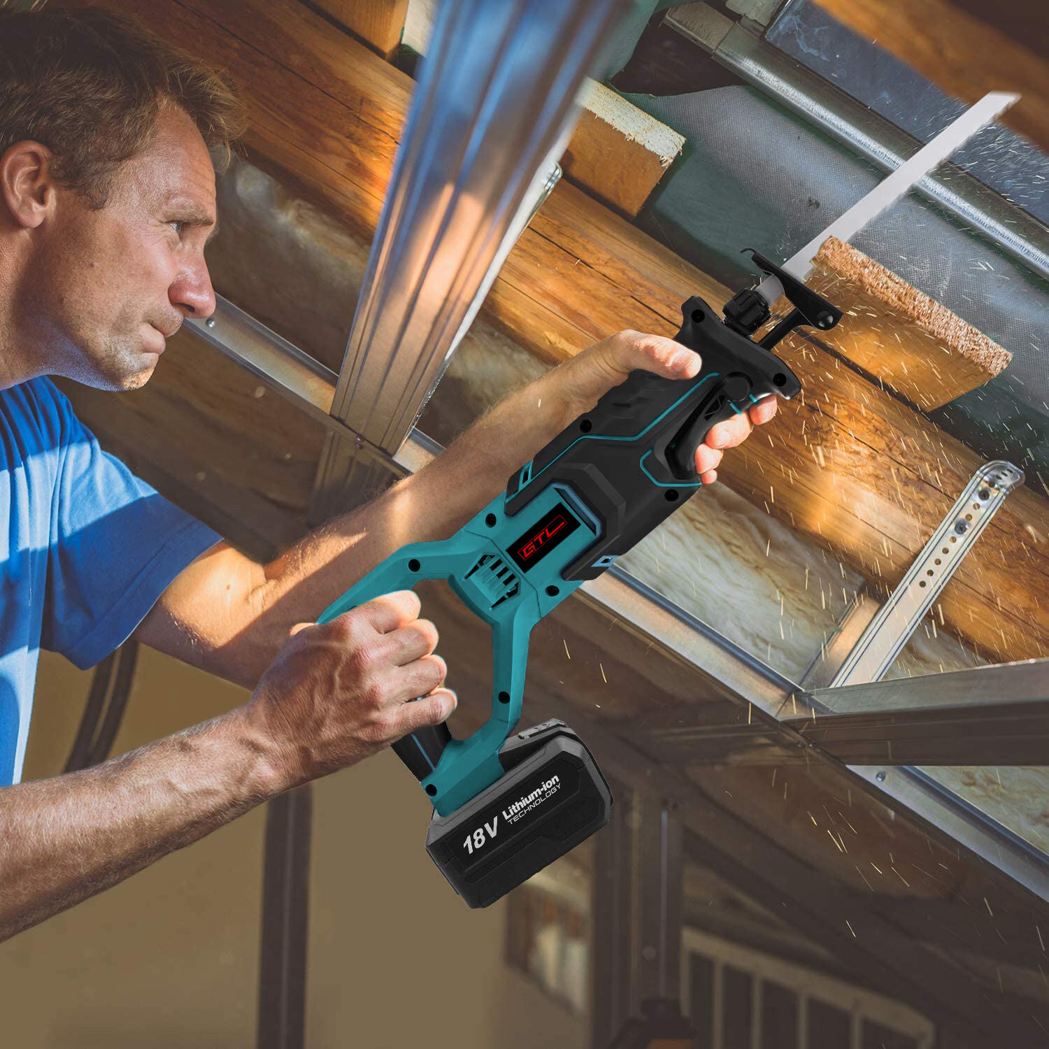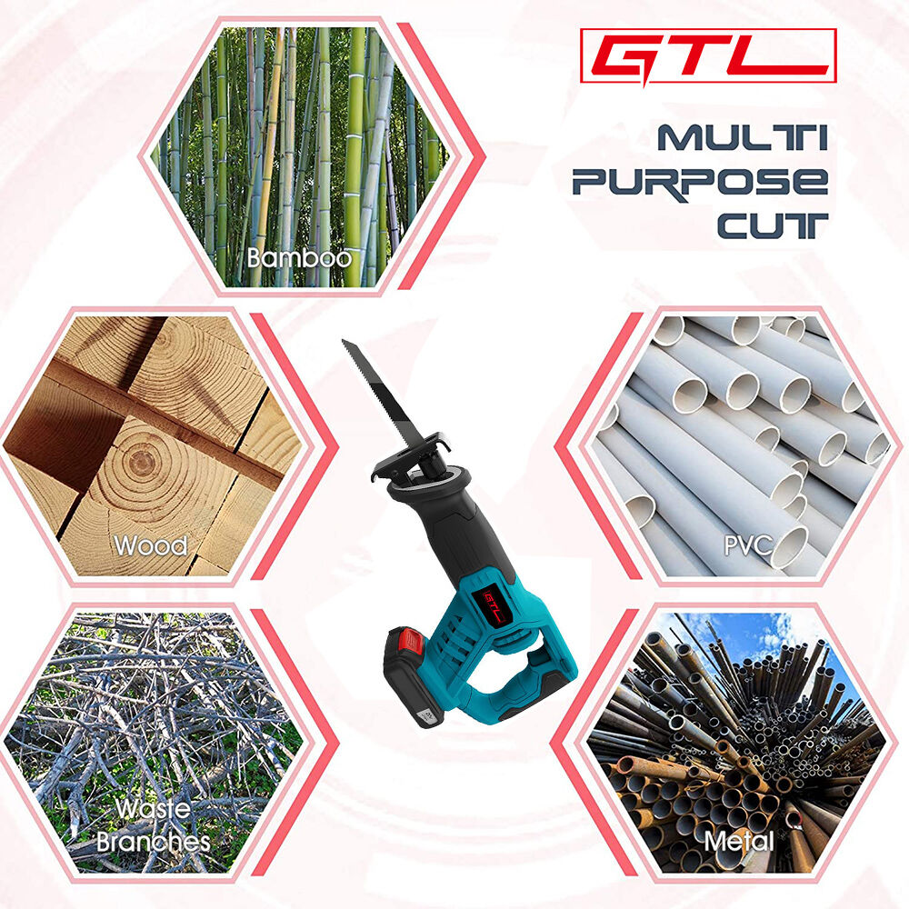 Uso flexible: Al ser inalámbrica, esta sierra recíproca ofrece flexibilidad y portabilidad, lo que la hace práctica para usarla en diversos espacios e ideal para cortar materiales como madera, PVC y metal, así como para podar árboles o realizar pequeños proyectos domésticos.