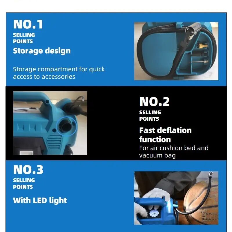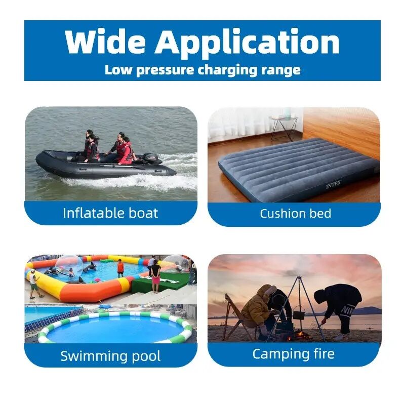 Uso: Adecuado para inflar colchones inflables, balones de fútbol, piscinas infantiles y neumáticos de bicicleta.
