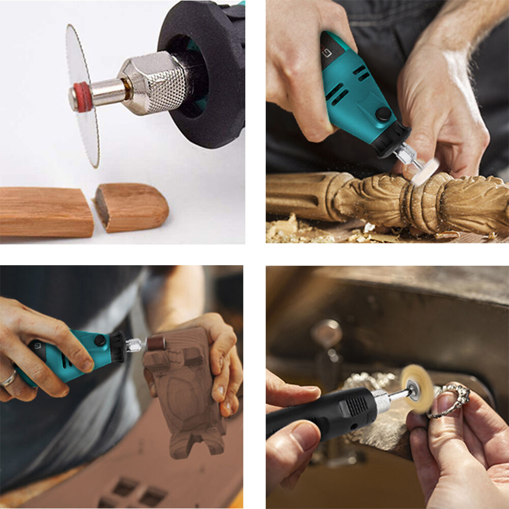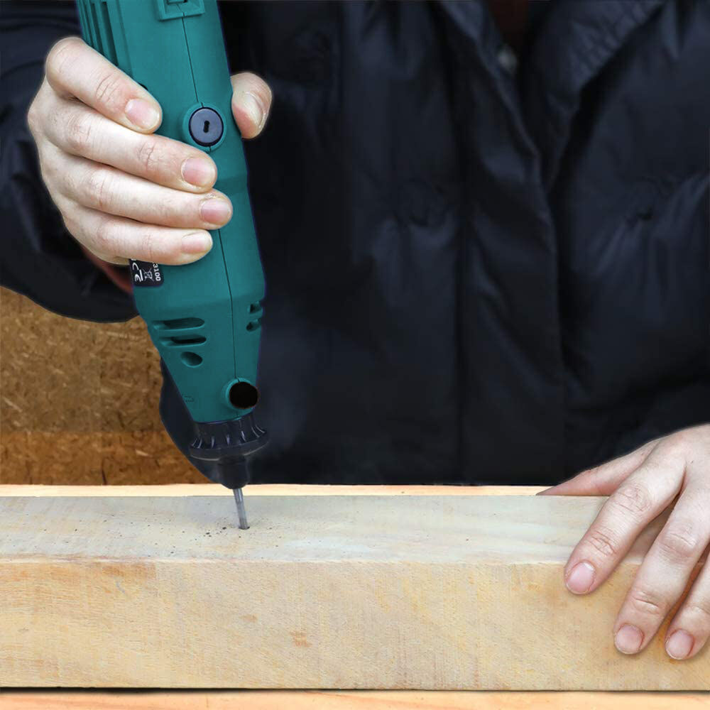 WIDE APPLICATION: Mini rotary tool can be used to grind, carve, polish, engrave, drill, or smooth workpieces for any home improvement or crafting job. So works fine on metal, wood, plastic, modeling clay, jewelry, aluminum. The multifunction tool grinder can also be used to care for the claws of pets. Do not be overused with hard materials.
