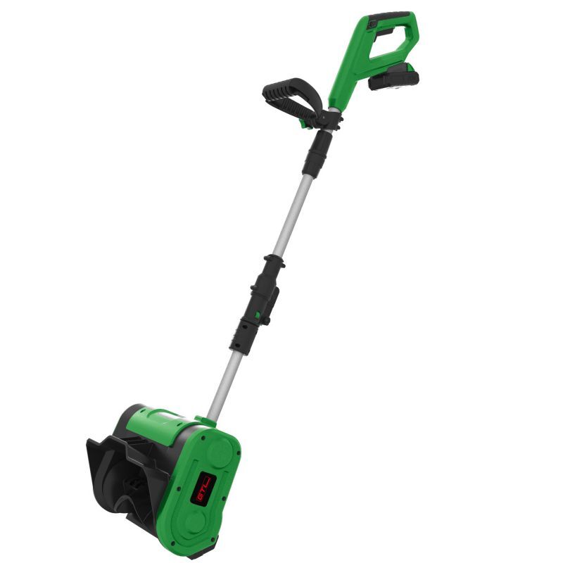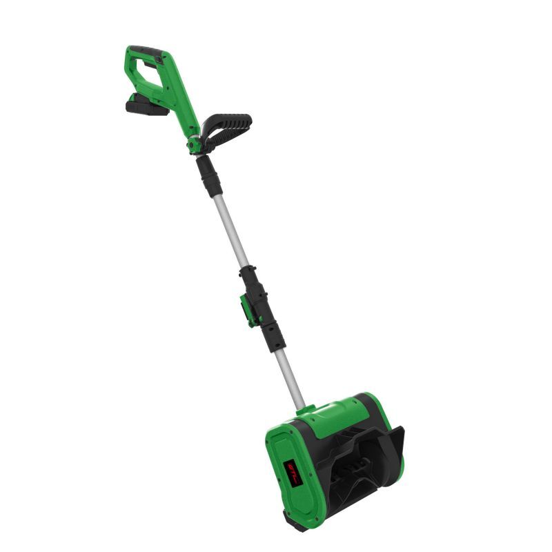 The power shovel is a compact, lightweight, and easy-to-store device with a powerful 20V battery motor, capable of efficiently clearing up to 300 lbs of snow per minute over a 10" wide path, featuring a durable polypropylene auger blade for superior performance in various snow conditions.