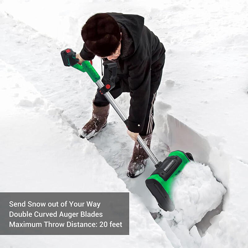 ERGONOMIC & SAFE: Our power snow shovel features an adjustable ergonomic handle with a back-protection design, allowing you to enjoy the scenery and fun of the snowy season while comfortably and efficiently clearing snow. Additionally, our power shovel features a dual safety switch, designed to reduce the risk of accidents, and ensure that your snow removal safe and dependable.
