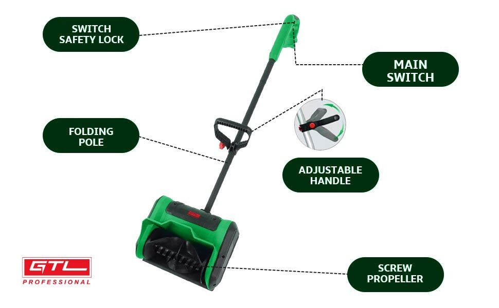 Electric Blower: This electric snow blower is powered 1000W/8A, the design with dual handles enhances comfort and makes control the tool easier and more convenient.