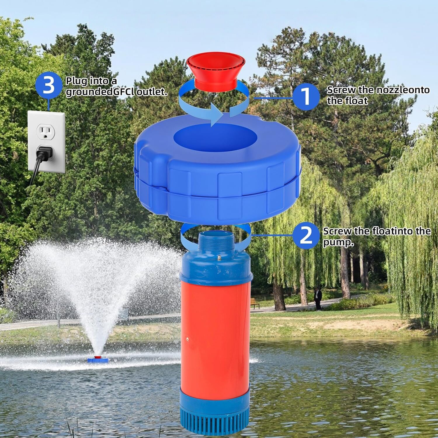 Versatile Nozzle Options:Equipped with two interchangeable nozzles, the fountain aerator offers flexibility. One nozzle produces a V - shaped spray, which is perfect for daily pond aeration, ensuring the water remains oxygenated and healthy for aquatic life. The other nozzle emits a linear jet, making it ideal for pumping and irrigation tasks, thus effectively managing water resources in gardens or farms.