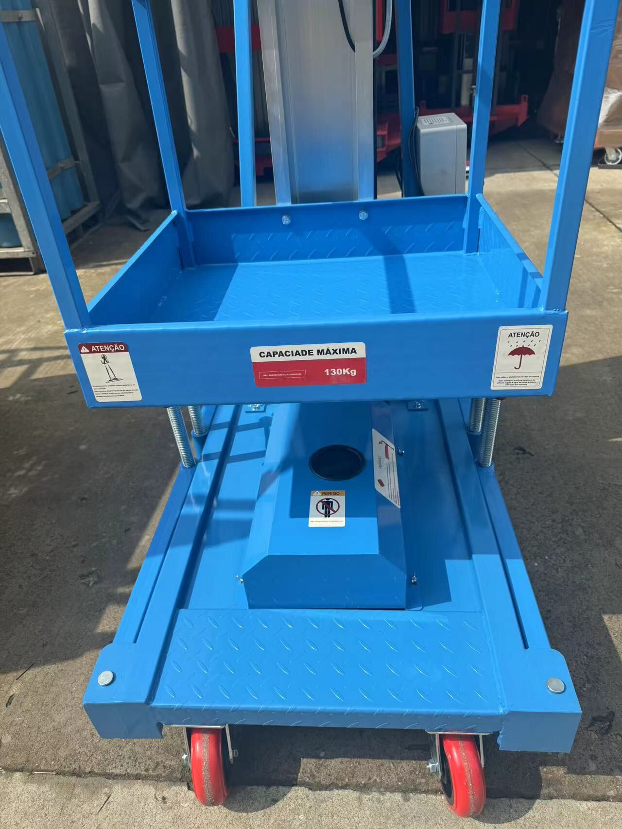 La plataforma elevadora eléctrica de un solo mástil ofrece un diseño compacto con una altura máxima de trabajo de 8 metros y una capacidad de 130 kg. Su cesta mide 58 cm x 64 cm, lo que la hace ideal para trabajos elevados eficientes. Impulsada por un motor de 220 V CA, es ideal para mantenimiento e instalación en espacios reducidos.