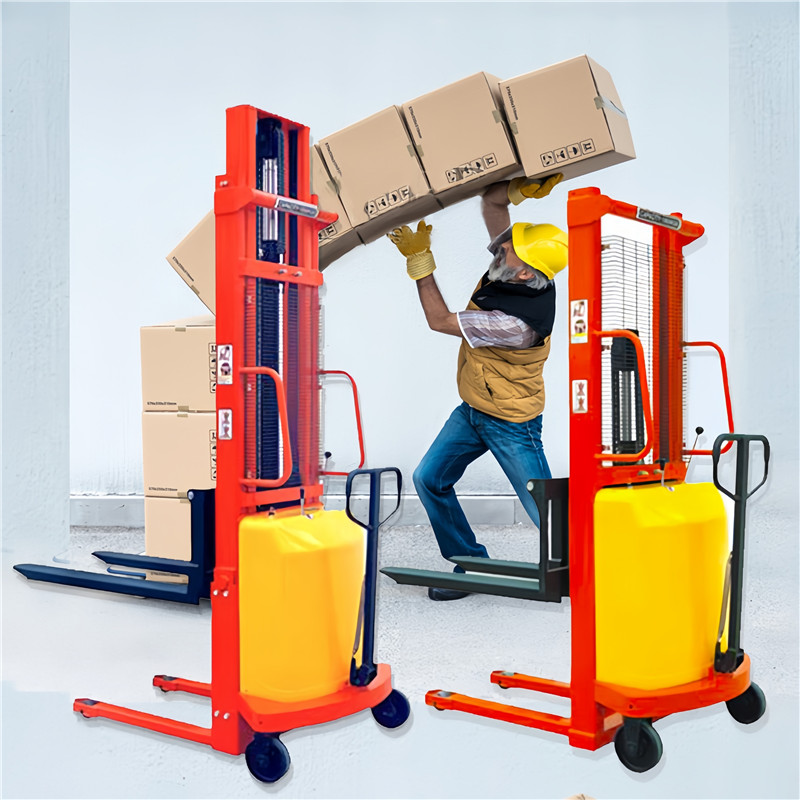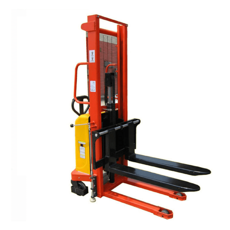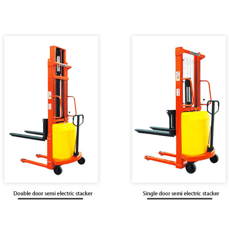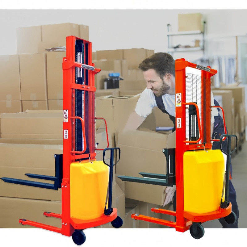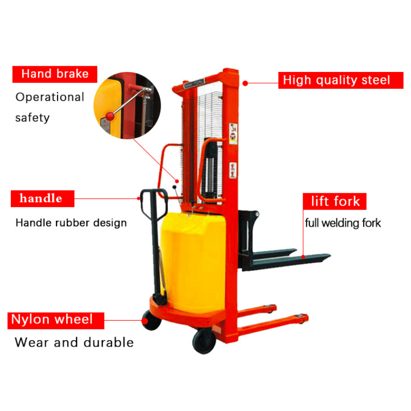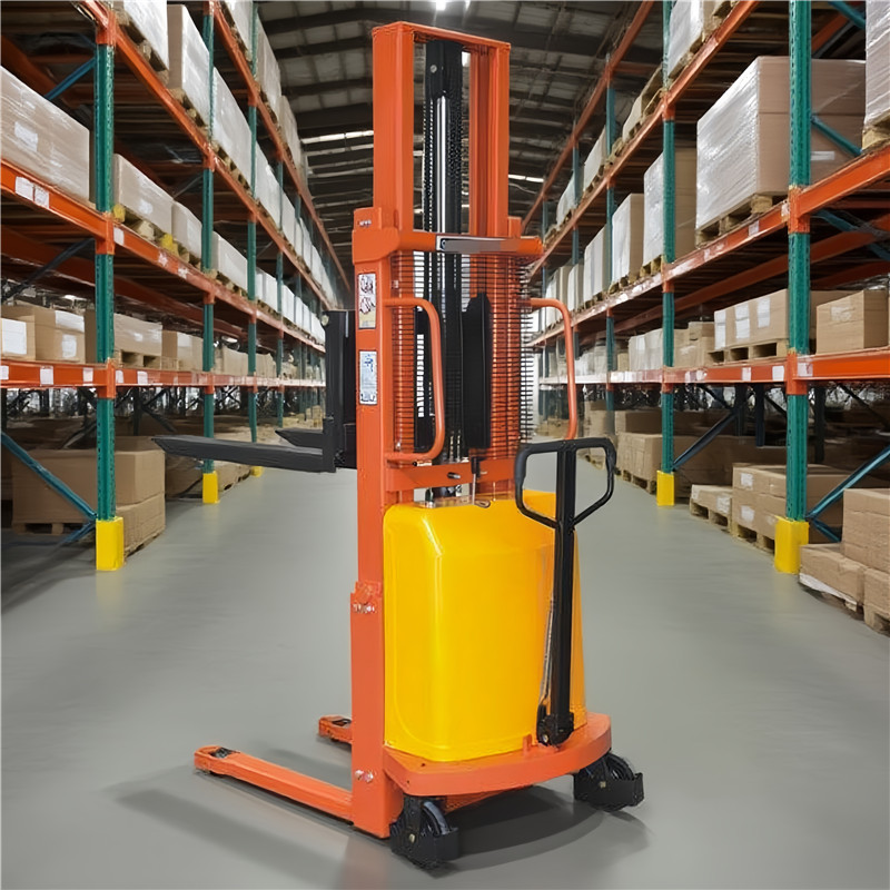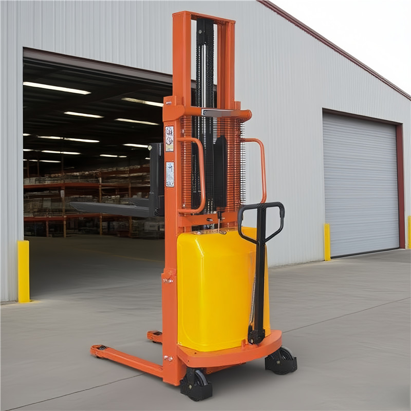 This electric stacker with 1000kg capacity fits various pallets, offering high cost-performance. Its adjustable forks lower to leg level. Equipped with an explosion-proof valve, foot brake, and over-discharge protection, it ensures safety and extends battery life.