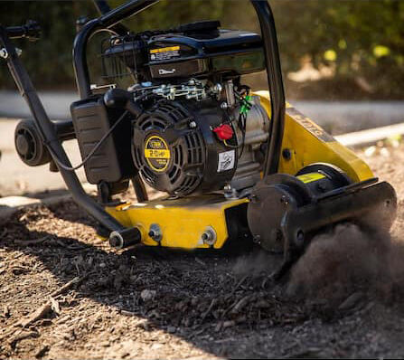 Alfombrilla de PU incluida: Reduce la vibración y evita que la placa compactadora se raye sin reducir la velocidad de desplazamiento ni la fuerza de compactación.
