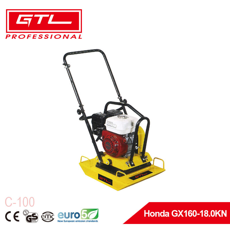 El compactador de placa vibratoria C-100 con motor Honda es una herramienta compacta y versátil para la compactación de suelos. Su placa unidireccional la hace ideal para trabajos pequeños que requieren precisión, mientras que sus características, como acelerador ajustable, manillares acolchados y juego de ruedas para facilitar su transporte, la convierten en una opción práctica para diversas tareas de construcción y paisajismo. El motor Honda GX160 garantiza un rendimiento fiable para uso profesional.