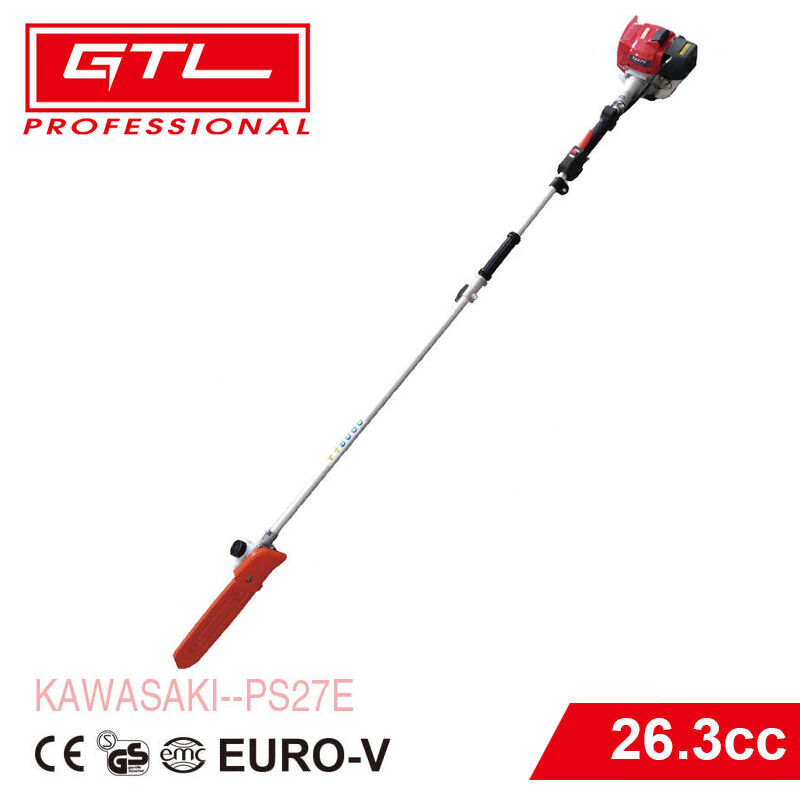 Introducing the KAWASAKI-PS27E Gasoline Pole Pruner, powered by the original Kawasaki TJ27 Engine. This tool is designed for efficiency and ease of use, making it ideal for professional gardeners and tree care specialists.