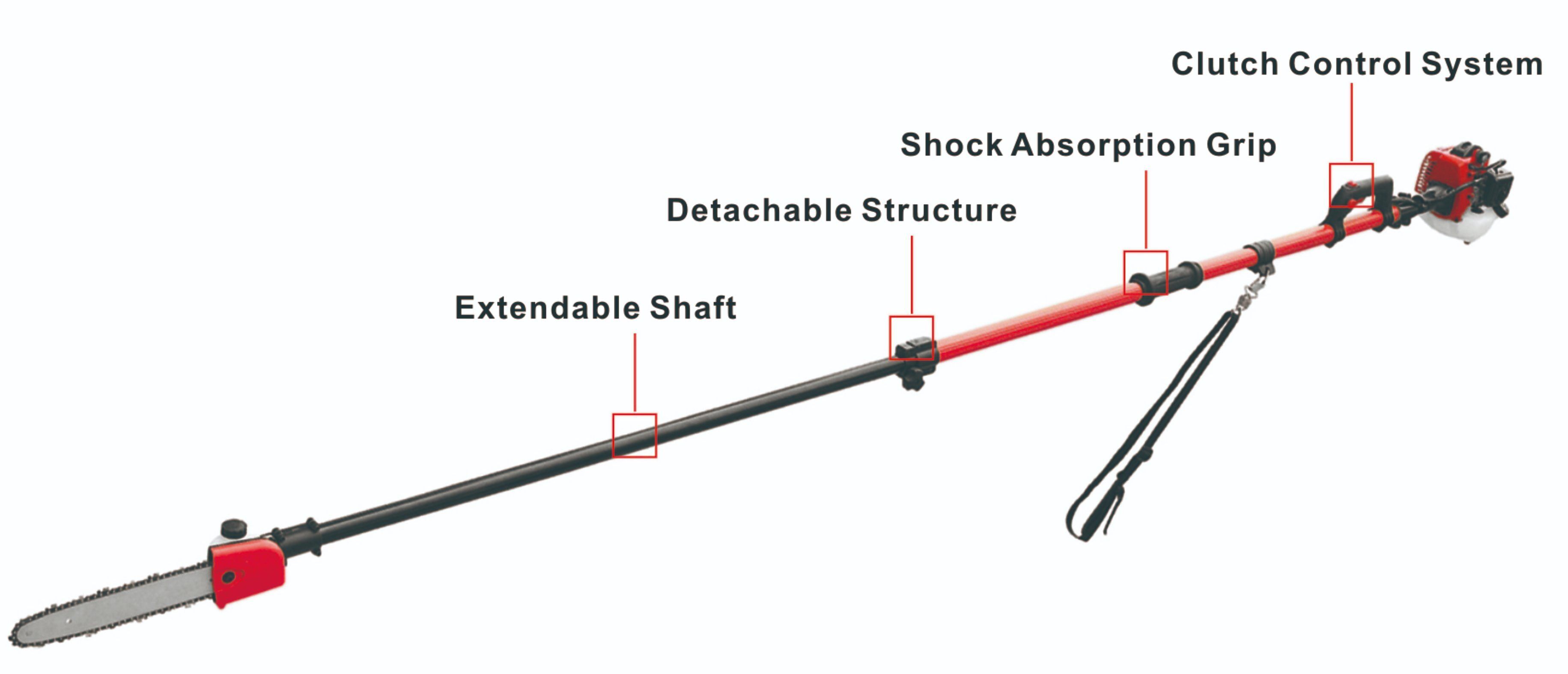 La podadora de pértiga a gasolina PPS250T es una herramienta profesional diseñada para la poda eficiente de árboles. Cuenta con un motor monocilíndrico de dos tiempos refrigerado por aire que ofrece una potencia confiable, ideal para diversas tareas de mantenimiento en exteriores.