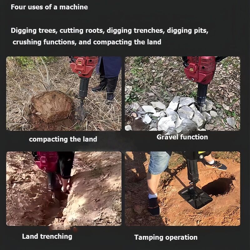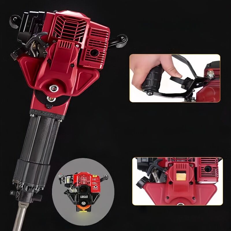 This high-performance demolition jack hammer delivers maximum force with its powerful 52cc engine and robust gear set for efficient heavy-duty breaking. Designed for quick, effortless operation, it reduces time and labor on concrete, block, or rock demolition. With interchangeable chisels and piling heads, it offers superior versatility for construction, farming, foundations, driveways, and various demolition projects.
