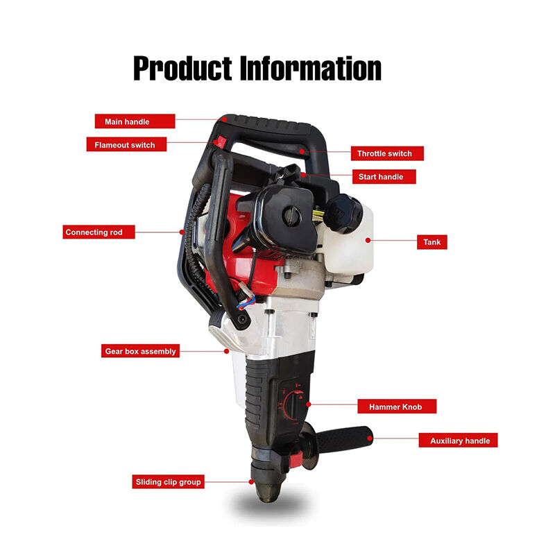 This gasoline-powered jack hammer is an air-cooled, two-stroke single-cylinder tool engineered for high-efficiency concrete breaking, rock drilling, and heavy-duty construction tasks, offering reliable performance in off-grid environments.