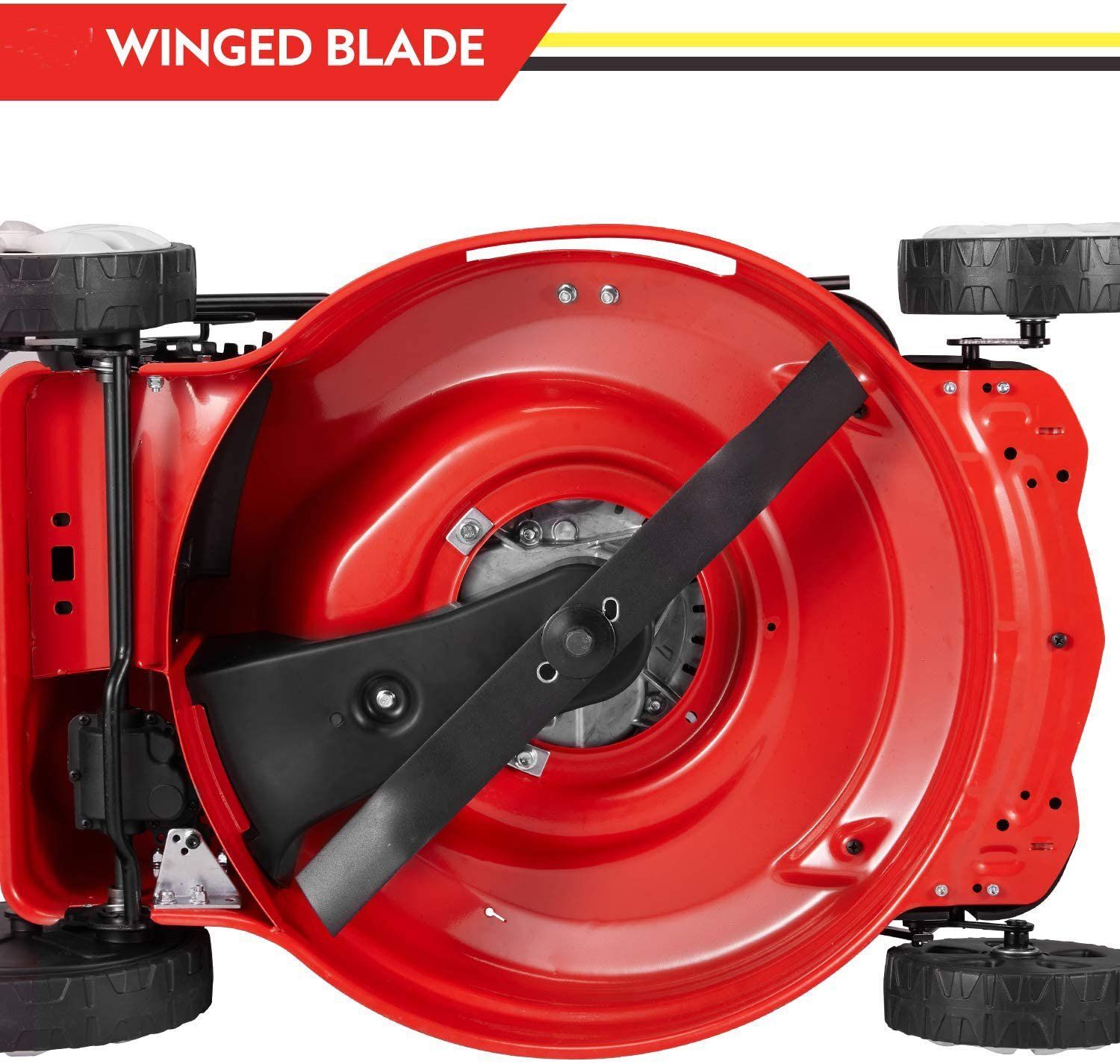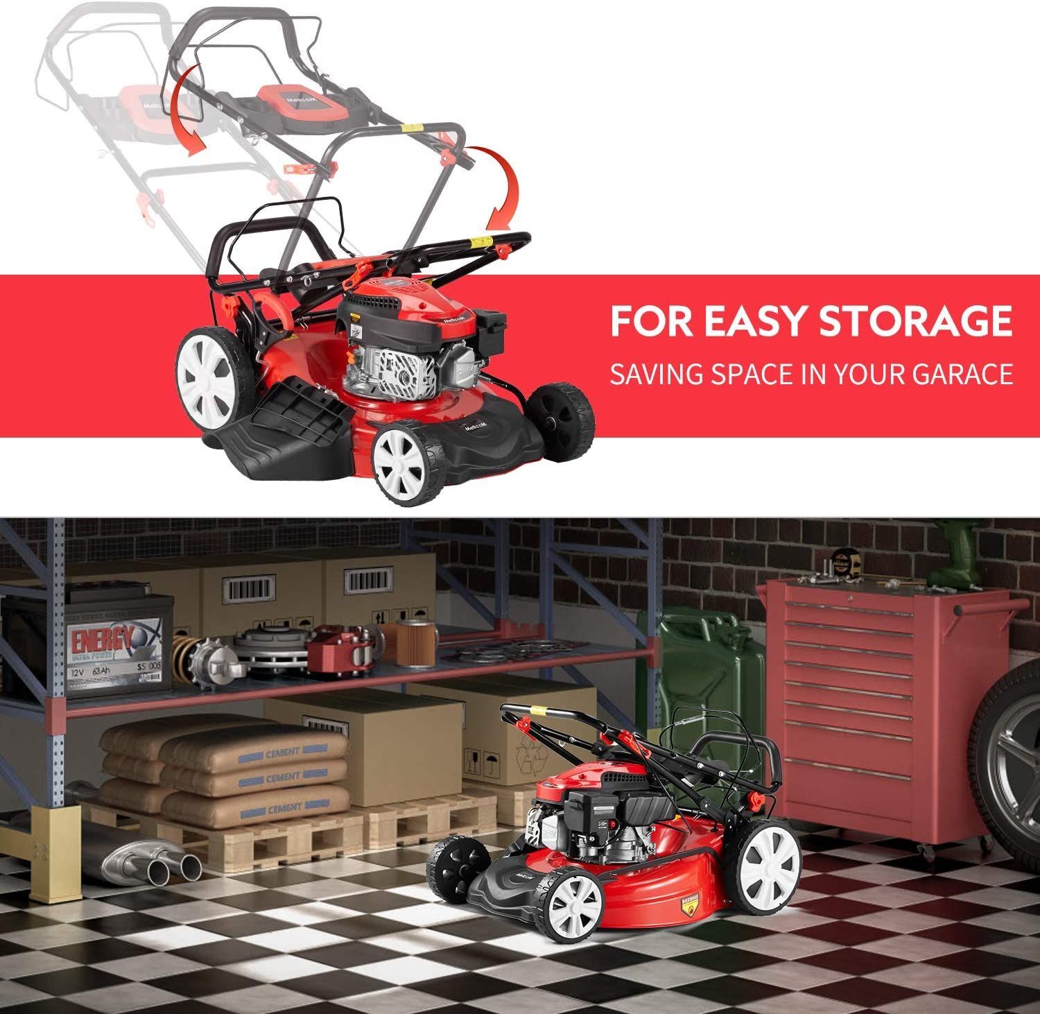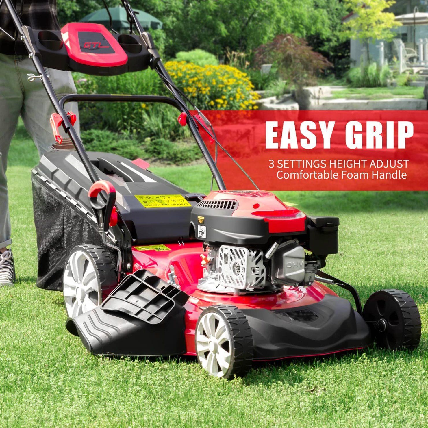 8 Position cutting height adjustment: This gas powered lawn mower offers a single lever that synchronizes the height adjustment of all four wheels, allowing you to customize the cutting height from 1" to 3" to perfectly match your lawn's requirements.