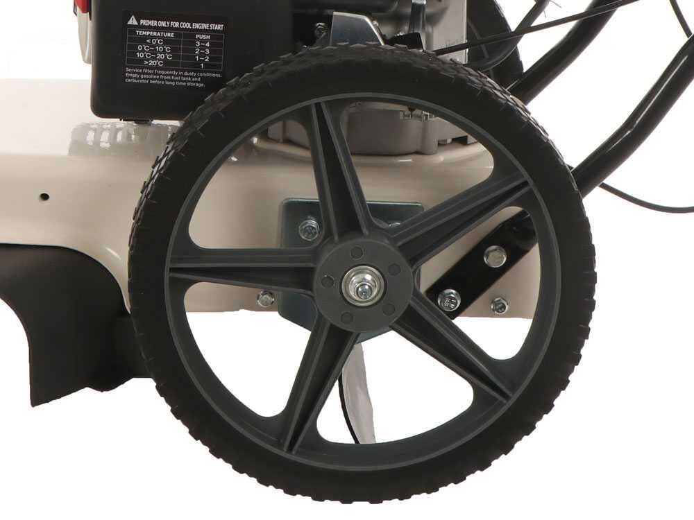 This user-friendly trimmer will help make big jobs seem small and help you clear the tallest, toughest grass and weeds. Its compact size lets you get into those hard to reach areas and clear the tallest, toughest grass and weeds. The 22" cutting diameter makes it easier to trim in those hard to reach places and the large wheels make maneuvering around smaller areas a breeze. The Wheeled Trimmer is easy to push around your yard with ease. The GTL 22" High Wheel Trimmer will help you cut even the biggest jobs down to size.