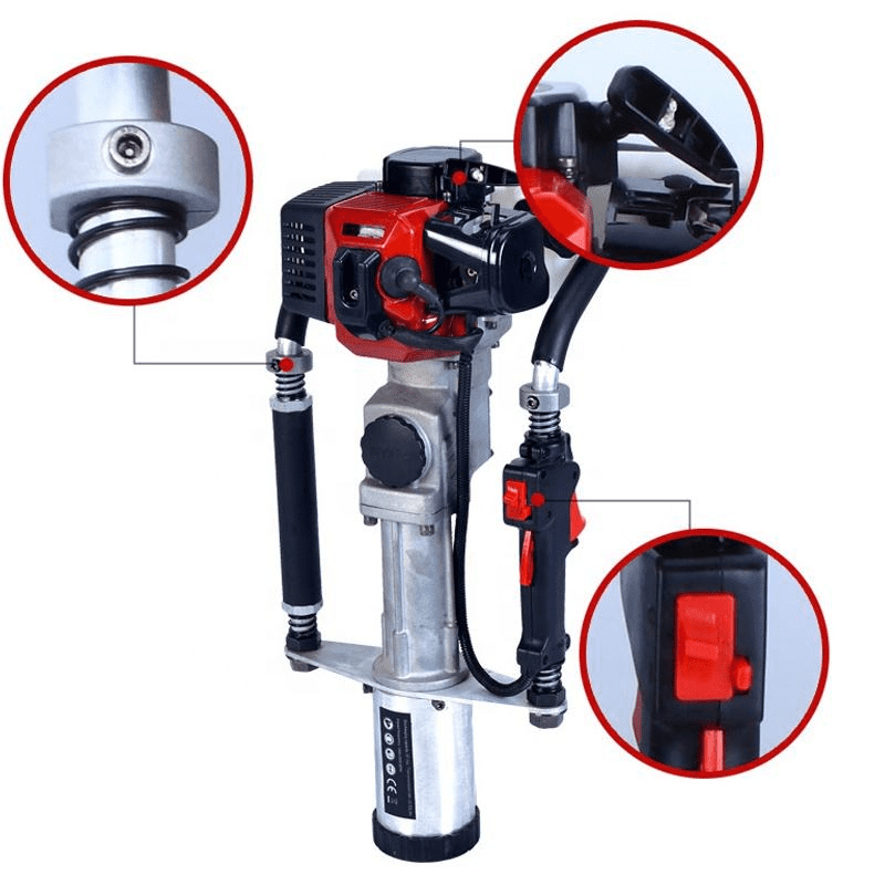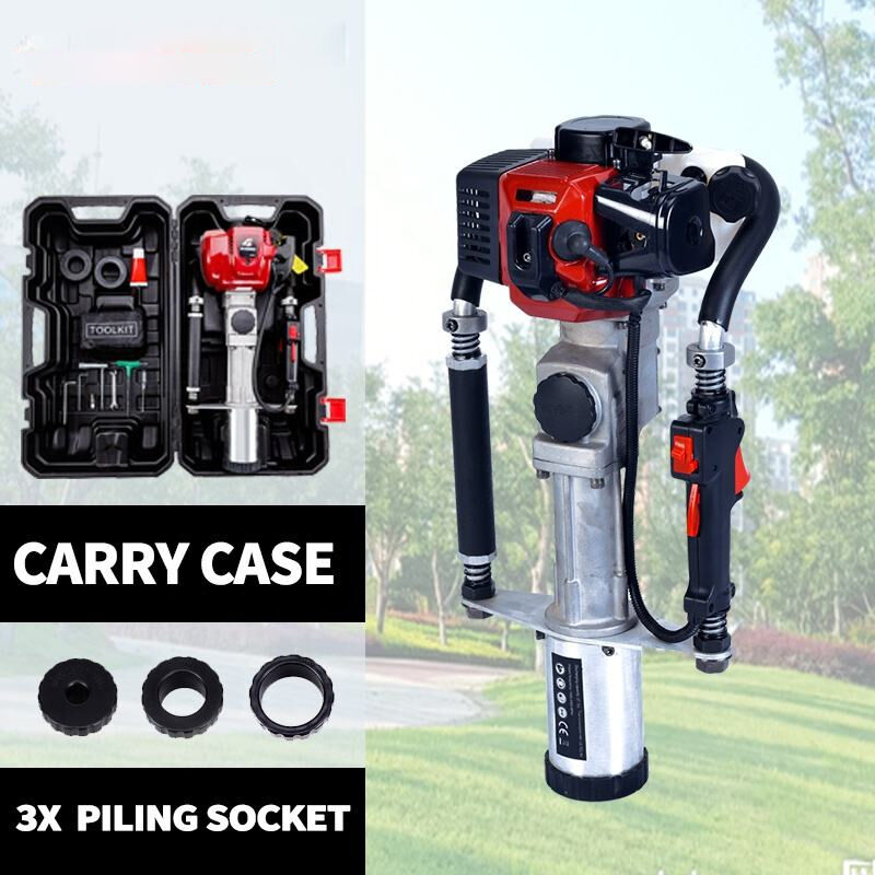 Power & Performance: Features a single-cylinder, air-cooled 2-stroke engine (33cc displacement, 36×32mm engine type) with max power 1000W/7000r/min and max torque 1.45N·M/5300r/min, delivering 30J impact energy at 3100BPM for efficient, powerful pile driving.