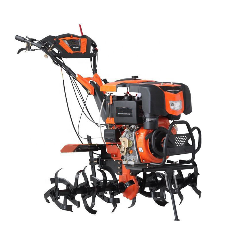 La cultivadora diésel de 10 HP (DT1350F) es una potente herramienta para la agricultura y la horticultura. En terrenos extensos, remove la tierra rápidamente gracias a su potente motor de 10 HP y a su ancho de trabajo ajustable de 1050 a 1400 mm, creando las condiciones ideales para la siembra y el crecimiento de los cultivos. Los aficionados a la jardinería descubrirán que esta cultivadora también es ideal para la preparación del suelo en parterres y huertos, manteniéndolo suave y bien ventilado para promover el crecimiento saludable de las plantas. Para la recuperación de tierras nuevas o el cultivo inicial de terrenos no cultivados, la DT1350F puede romper rápidamente las capas de tierra dura, sentando una base sólida para las actividades agrícolas posteriores. Equipada con neumáticos de alta resistencia 500-12 y un sistema de arranque manual de retroceso, garantiza movilidad en diversos terrenos y la comodidad de un manejo sencillo. Tanto agricultores profesionales como aficionados a la jardinería doméstica pueden manejar esta cultivadora fácilmente y disfrutar de una experiencia de labranza eficiente y práctica.