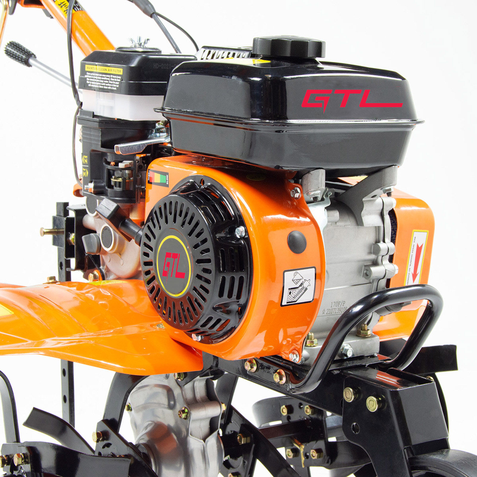 Prepare su terreno para la siembra con el fantástico cultivador/rotocultivador de gasolina de 4 tiempos GTL Contractor y arado de GTL. Combinando un motor monocilíndrico refrigerado por aire de 212 cc y 7,5 HP, extremadamente eficiente, con púas de acero de alta resistencia, la máquina prepara su terreno sin esfuerzo, ya sea un jardín, un huerto o un campo. Desde prepararse para la siembra, limpiar zonas compactadas o nivelar terrenos edificados, el cultivador/rotocultivador de gasolina GTL Contractor hará el trabajo en mucho menos tiempo que las herramientas manuales, ¡y su espalda se lo agradecerá!