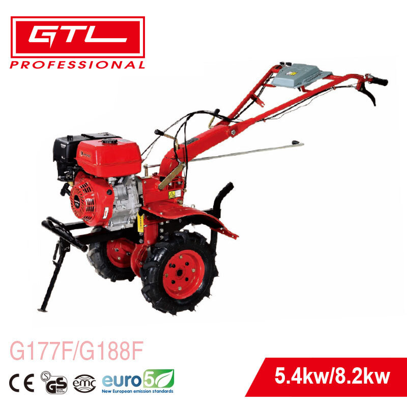 La cultivadora a gasolina, modelo G177F/G188F, es una máquina agrícola eficiente y versátil, diseñada para un cultivo eficaz del suelo. Es una excelente opción para quienes necesitan una herramienta fiable y eficiente para la preparación del suelo, que ofrece un equilibrio perfecto entre potencia, maniobrabilidad y facilidad de uso. Sus dos opciones de arranque, ancho de cultivo ajustable y eficiente potencia la hacen ideal para una amplia gama de aplicaciones agrícolas.