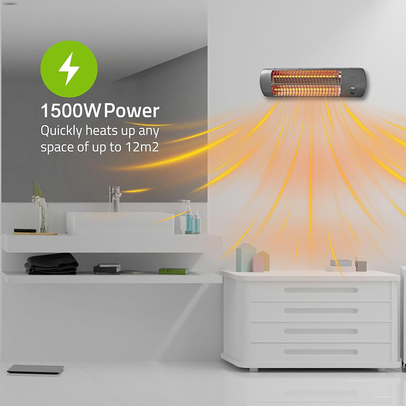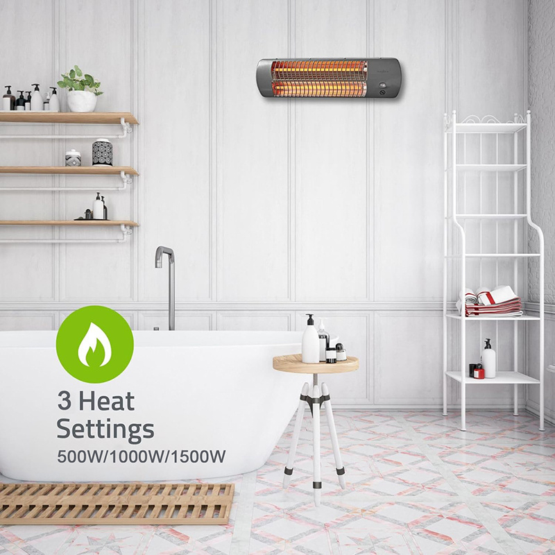 Three Heat settings : With its quartz heating element, the heater produces warmth within seconds. With 3 adjustable heat settings (500W/1000W/1500W), you can easily switch the settings to get your temperature just right.