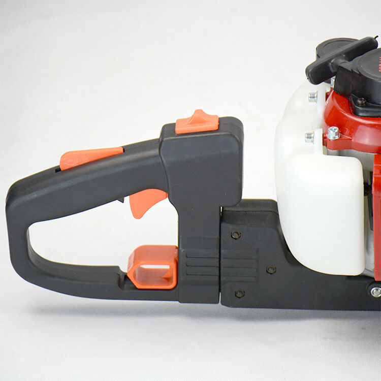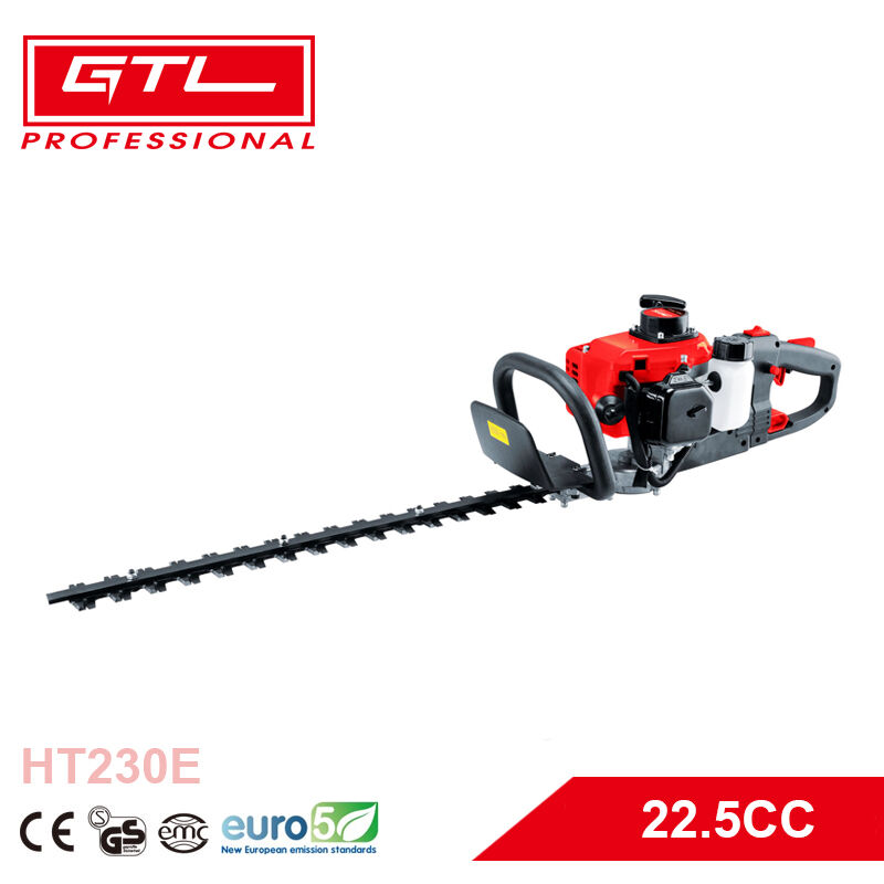 The HT230E is a compact yet powerful gasoline hedge trimmer designed for precision trimming. It is equipped with a 1E32F engine boasting a 22.5cc displacement and a high power output of 0.8kw at 8500rpm. The trimmer features a diaphragm type carburetor for efficient fuel delivery and a cutting width of 20mm, suitable for detailed trimming tasks. With a blade length of 500mm, it is ideal for reaching into tight spaces and maintaining smaller hedges.