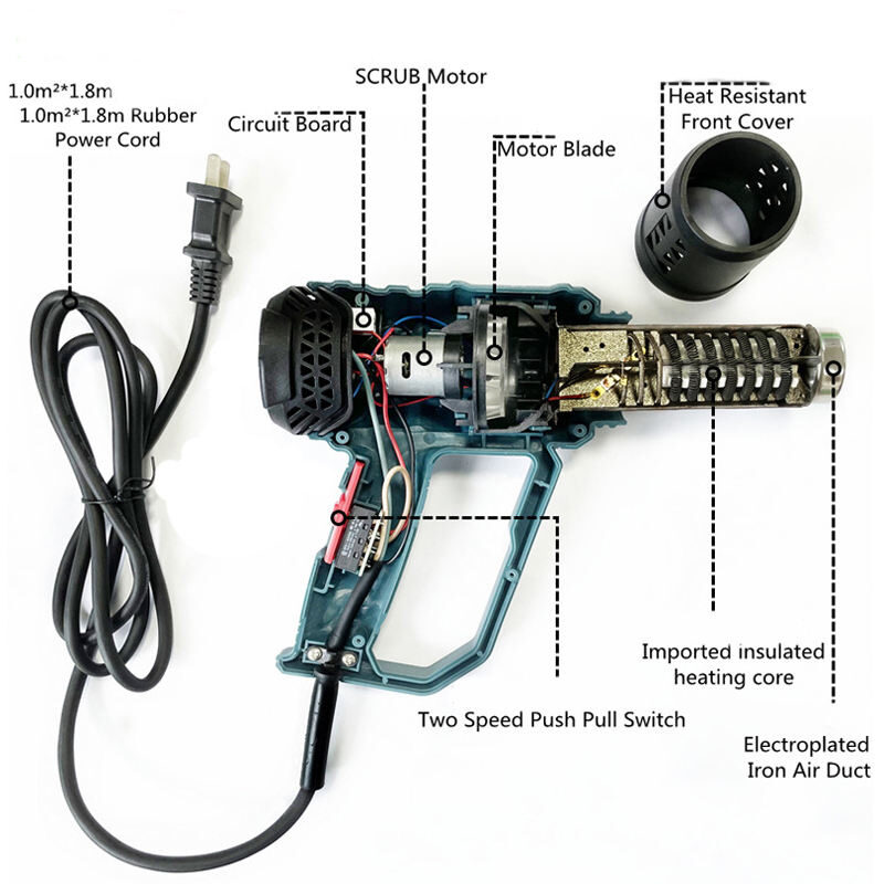 Powerful 2000W Heating: Heats up fast with 2000W of power; adjustable temperature range from 662°F–1112°F(350-600℃), suitable for vinyl wrap, shrinking, paint removal, and more
