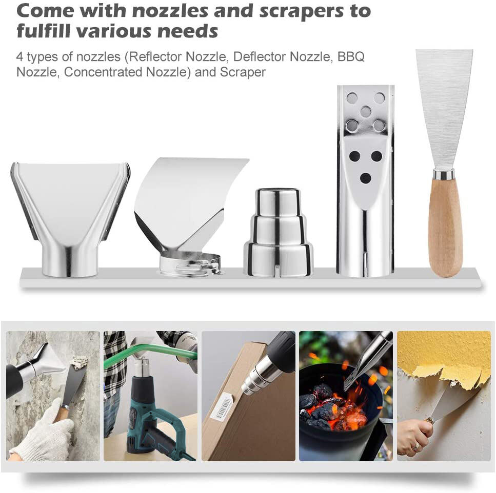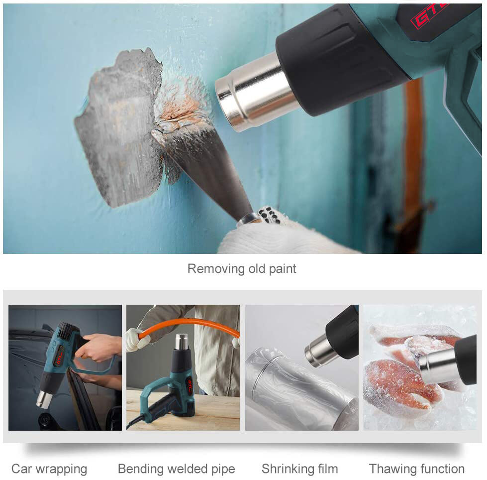 Scientific Ergonomic Design & Wide Applications: The heat gun has a scientific ergonomic design handle can prevent repetitive strain injuries. Ideal use for shrinking heat shrink tube, shrinking wrap, heating PVC, electronics, cell phone repairs, vinyl wrap, removing paint or floor tiles, loosening rusted bolts, and other heating or thawing purpose.