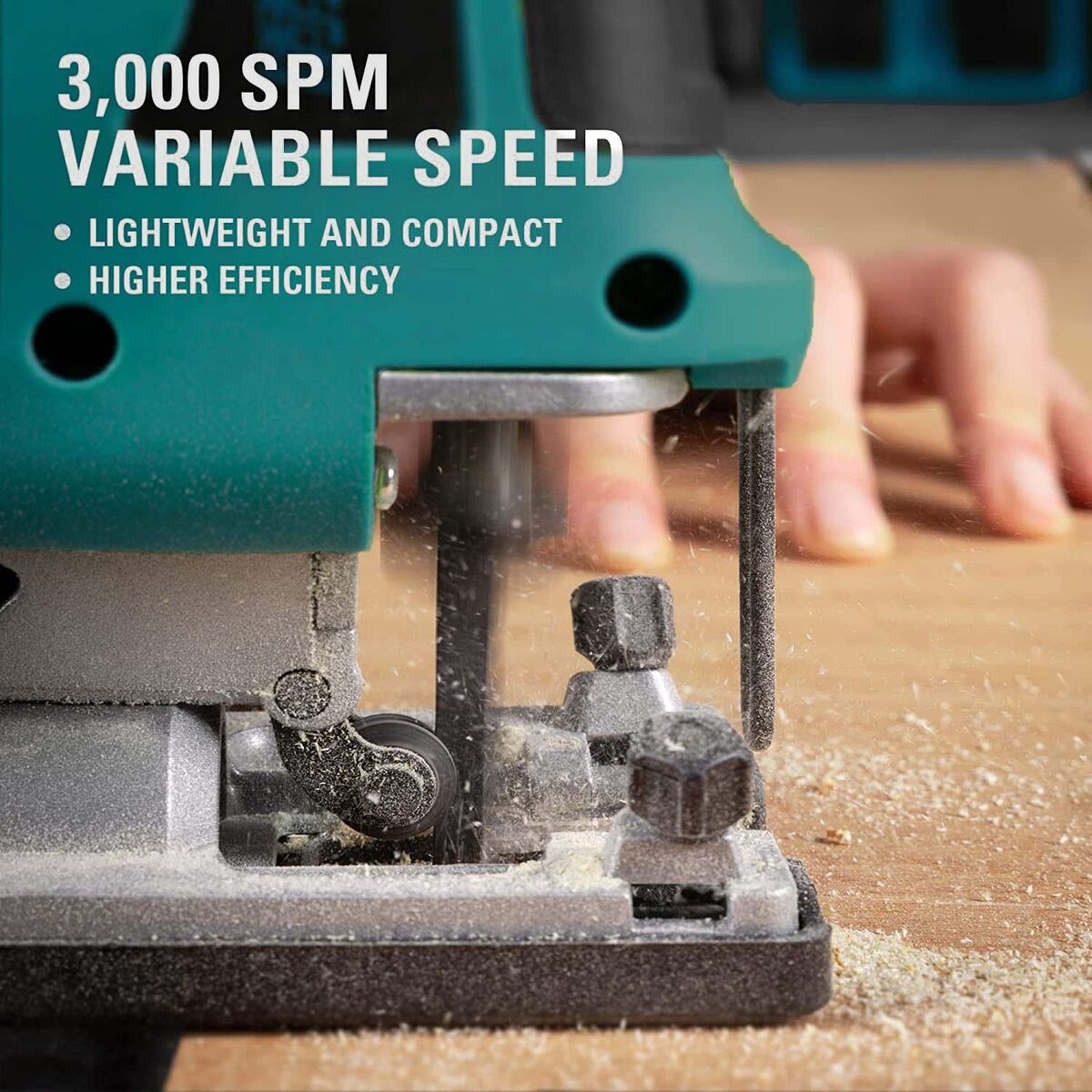 Variable Speed Trigger: Offers control with a range from 0-3,000 strokes per minute (spm) for clean and accurate cuts.