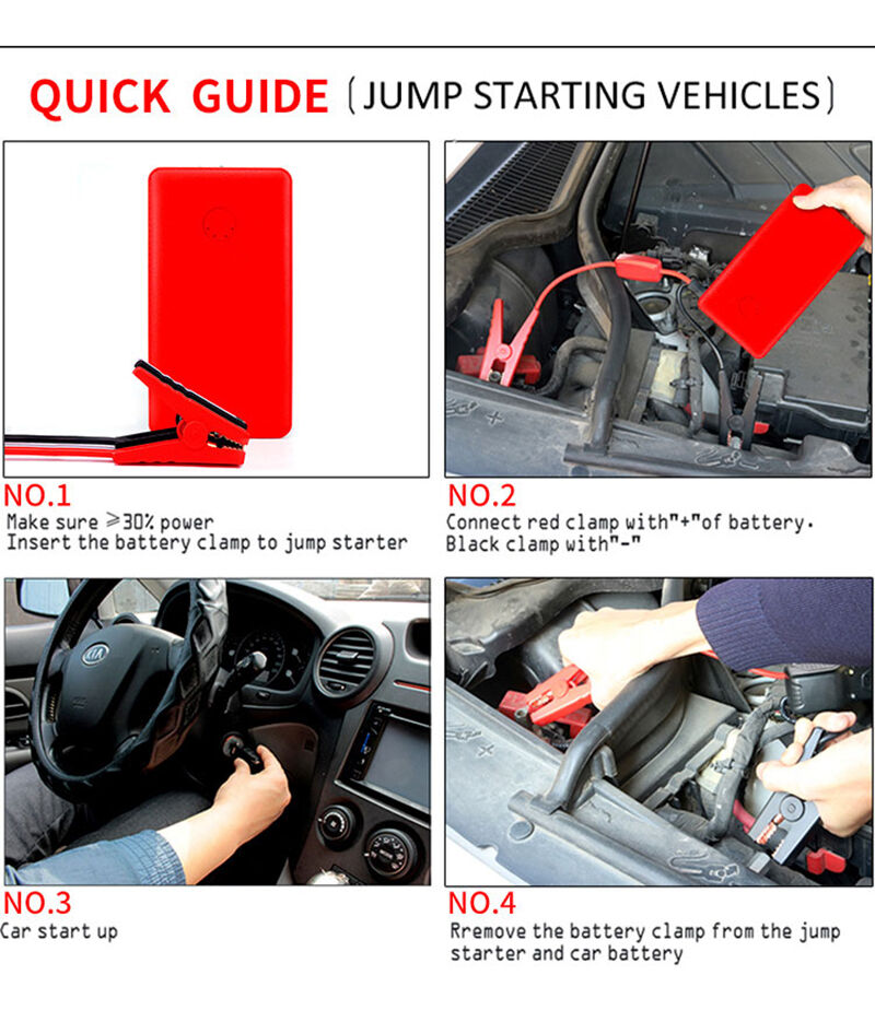 Security Proection: Newly upgraded terminals could provide reverse polarity protection, over-current protection, overload protection, over-voltage protection, over-charge protection. Multiple safety protection design ensure the jump starter zero defects.