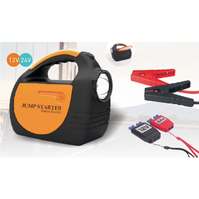 Powerful Car Jump Starter: Powerful capability for jump start 12V/24V vehicle. Built-in heavy duty clamps and cables, this car jump starter can easily restart your car. 3 steps to start your car, very easy operation.