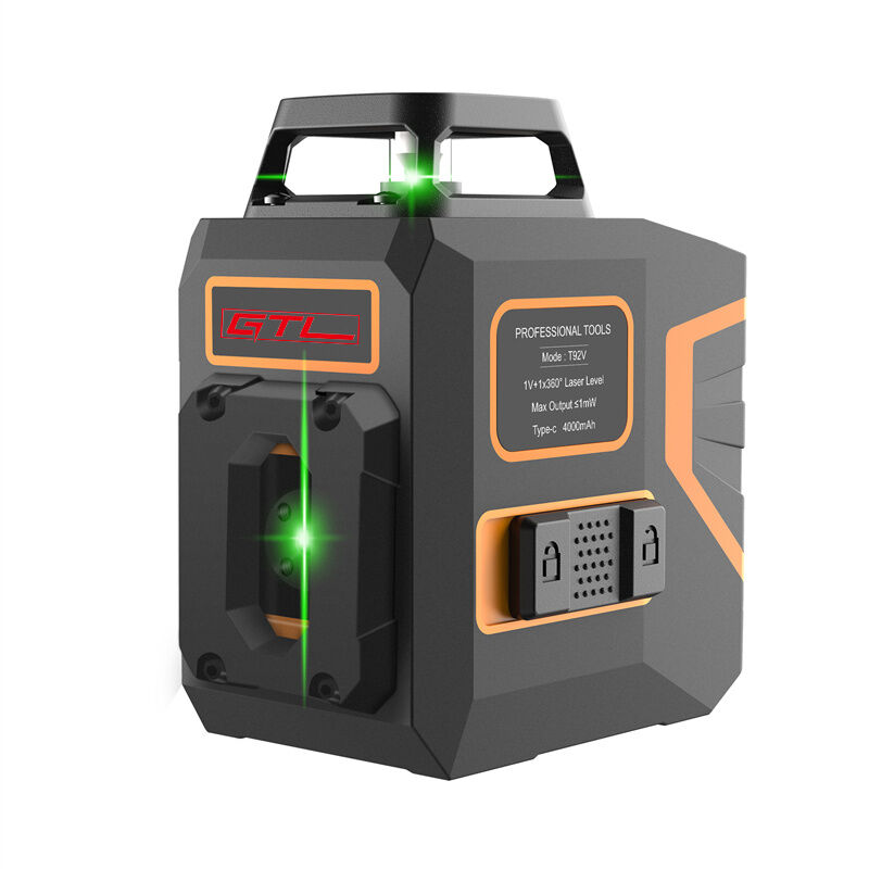 This green light switchable cross line laser level is designed for high precision and versatility in various alignment and leveling tasks, with a durable construction and convenient charging solution.