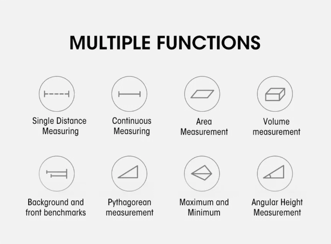 The laser rangefinder can automatically calculates .Measuring range 0.05-40.Units can be easily changed between M/In/Ft with an accuracy of ±2mm .