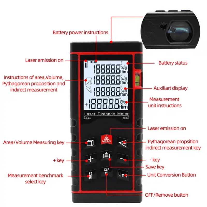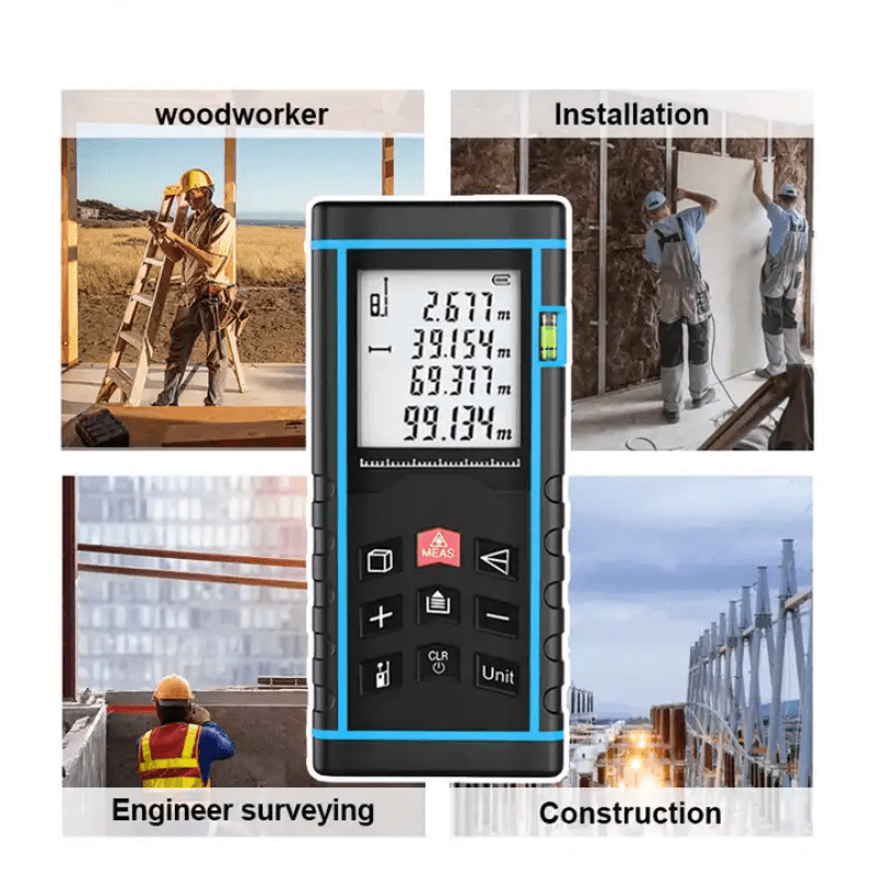 Advanced laser measuring device with laser precision technology, it will real-time display the data when measuring; The measuring range of digital measuring tape is from 0.05m to 80m, while its accuracy is 2mm, very accurate and efficient.Units can be easily changed between M/In/Ft with an accuracy of ±1.5mm .