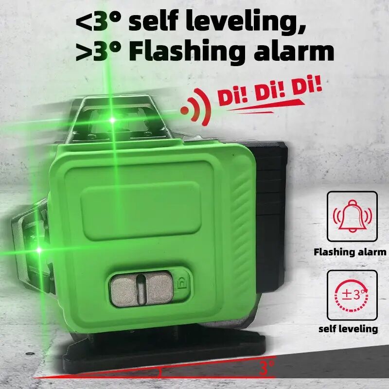 The laser level with lithium battery ,the operation temperature Range can from 10ºC to 45ºC .When working in self-leveling mode, the range of Self leveling scope is ± 3°and the laser level will automatically level for cross line, otherwise the laser will flash to indicate thr out-of-level condition.