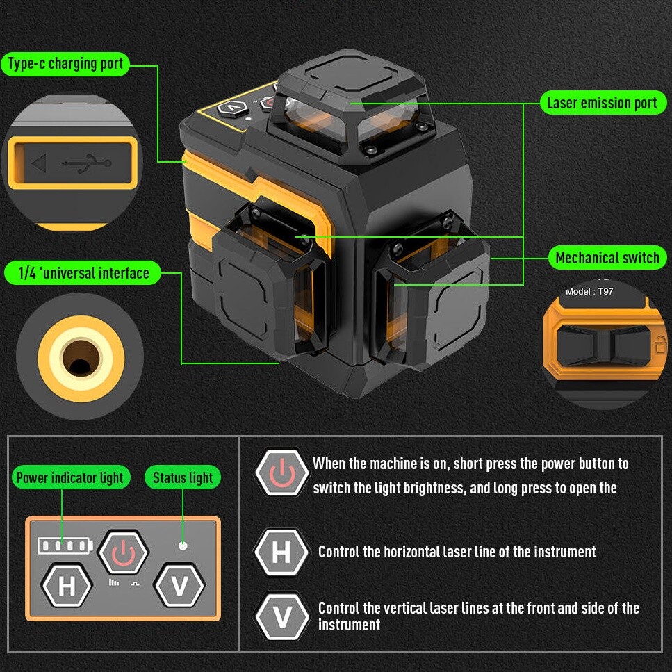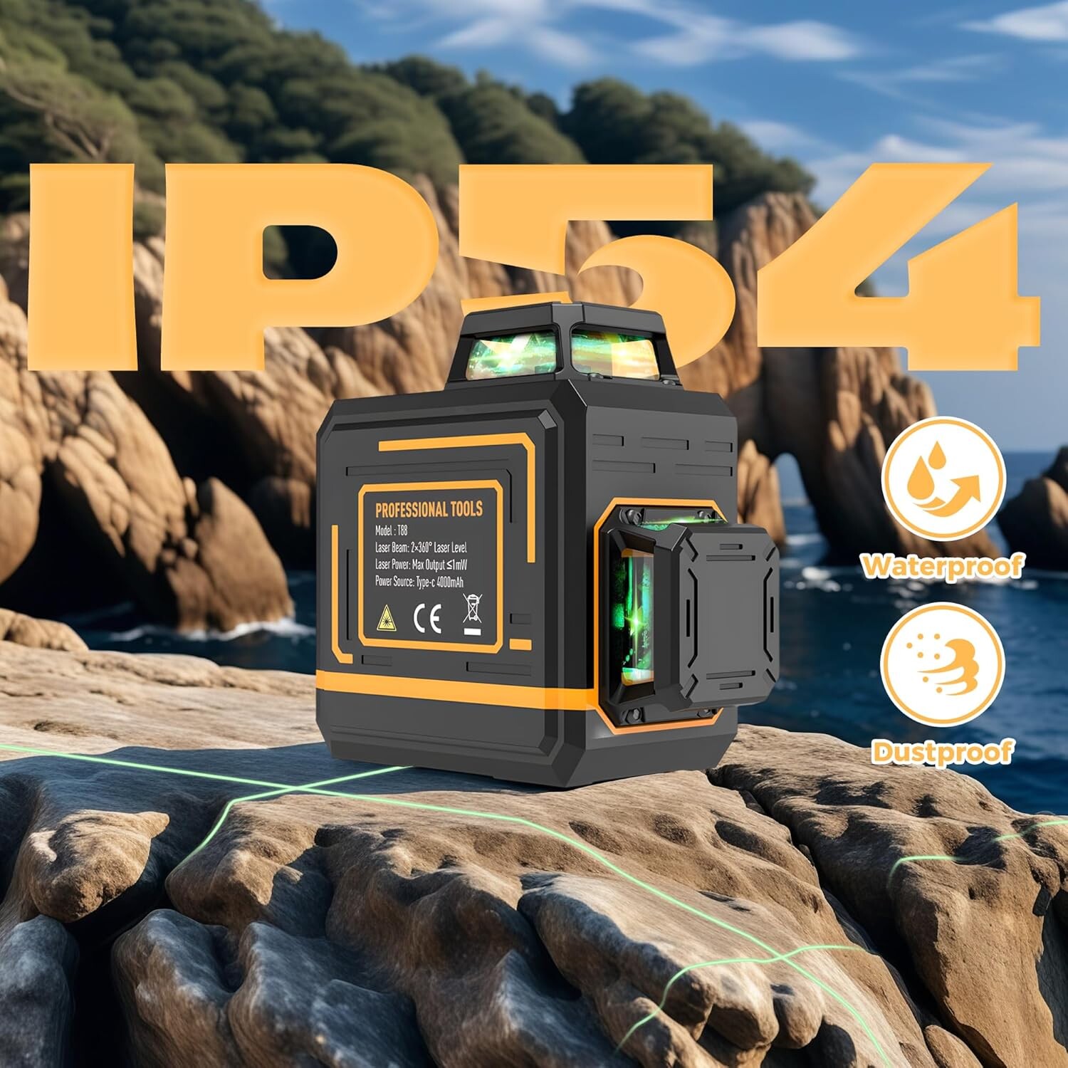 Versatile Performance: Three laser modules and adjustable brightness adapt to diverse working environments, while the 30m line distance covers large areas effectively.