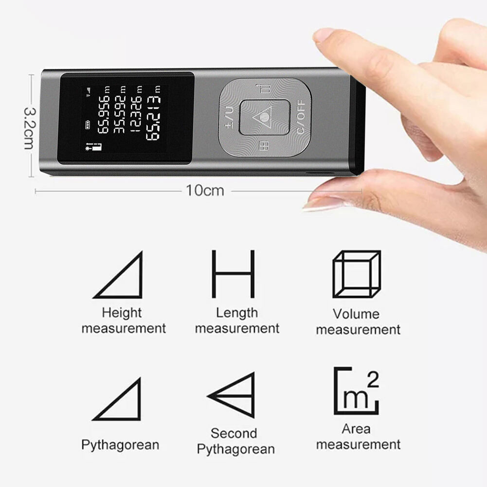 This Laser Distance Meter operates rapidly with 0.03s measuring time, boosting work efficiency. Built from aluminum alloy and ABS, it's durable for daily use, with buttons lasting 1 million presses for long-term reliability. A 200mAh polymer battery minimizes recharging hassle, ensuring consistent performance during extended use.