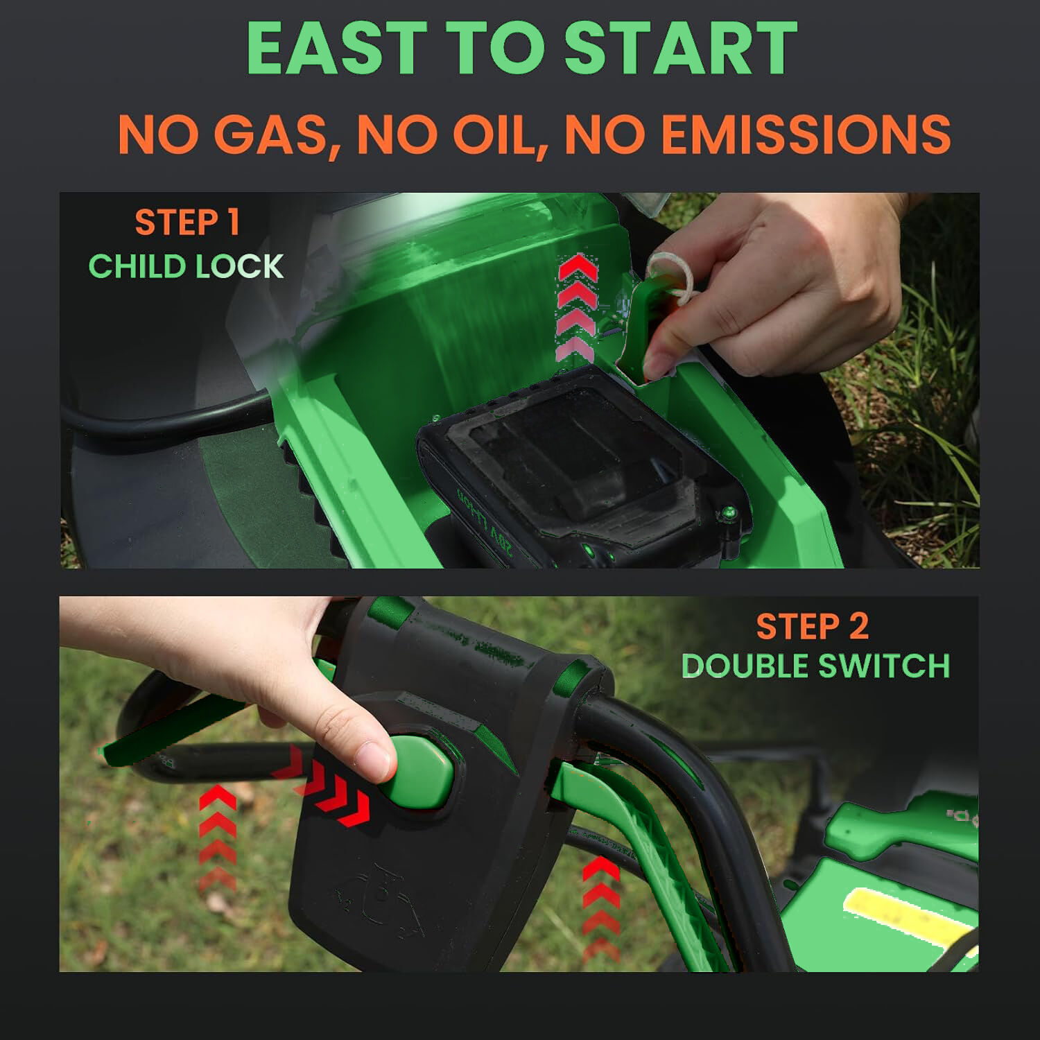 Brushless Motor:The electric lawn mower features brushless motors that are light in voice and low in vibration. Not only can it provide powerful power, but also without the trouble of noisy and dragging in gas lawn mower, corded lawn mower.
