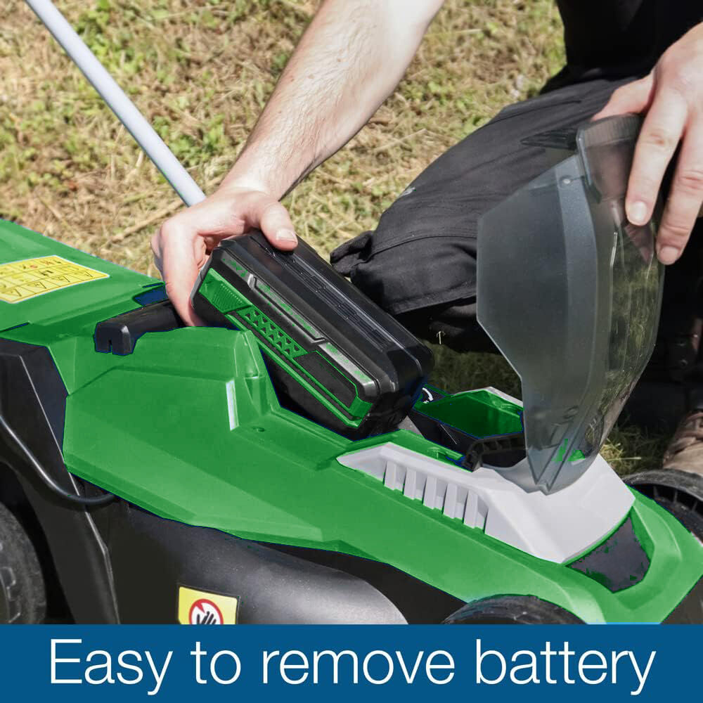 20V Cordless Lawn Mower-With a cutting width of 38cm and the automatic thread feed,you can easily trim hard-to-reach areas in the garden.