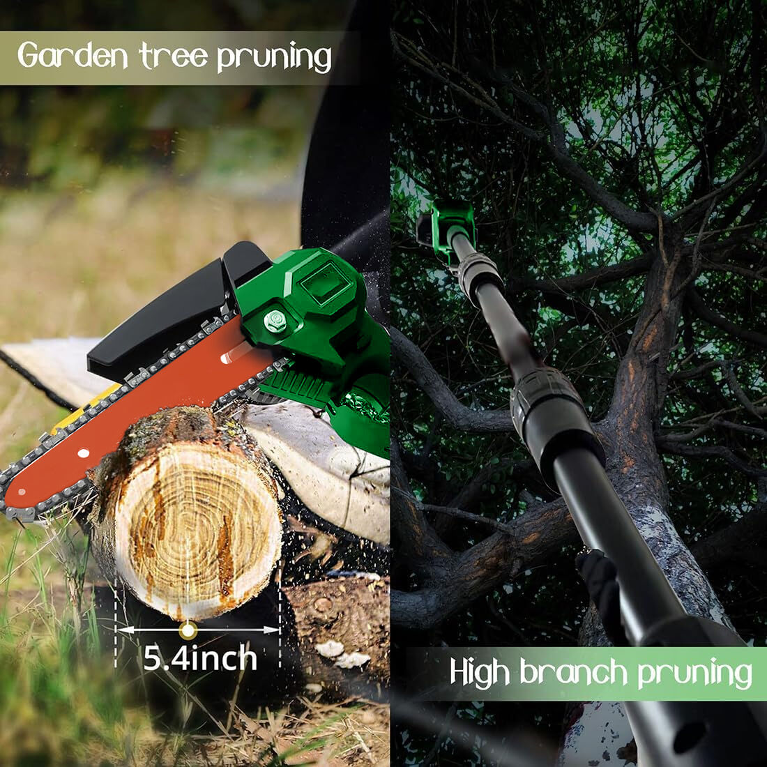 Easy to use and safe: No installation required. Once you receive your pole saw, just install the battery and pole and it's ready for quick use. Safety first. The pole adopts a rubber cotton handle, which is comfortable to hold and not easy to feel tired when working.
