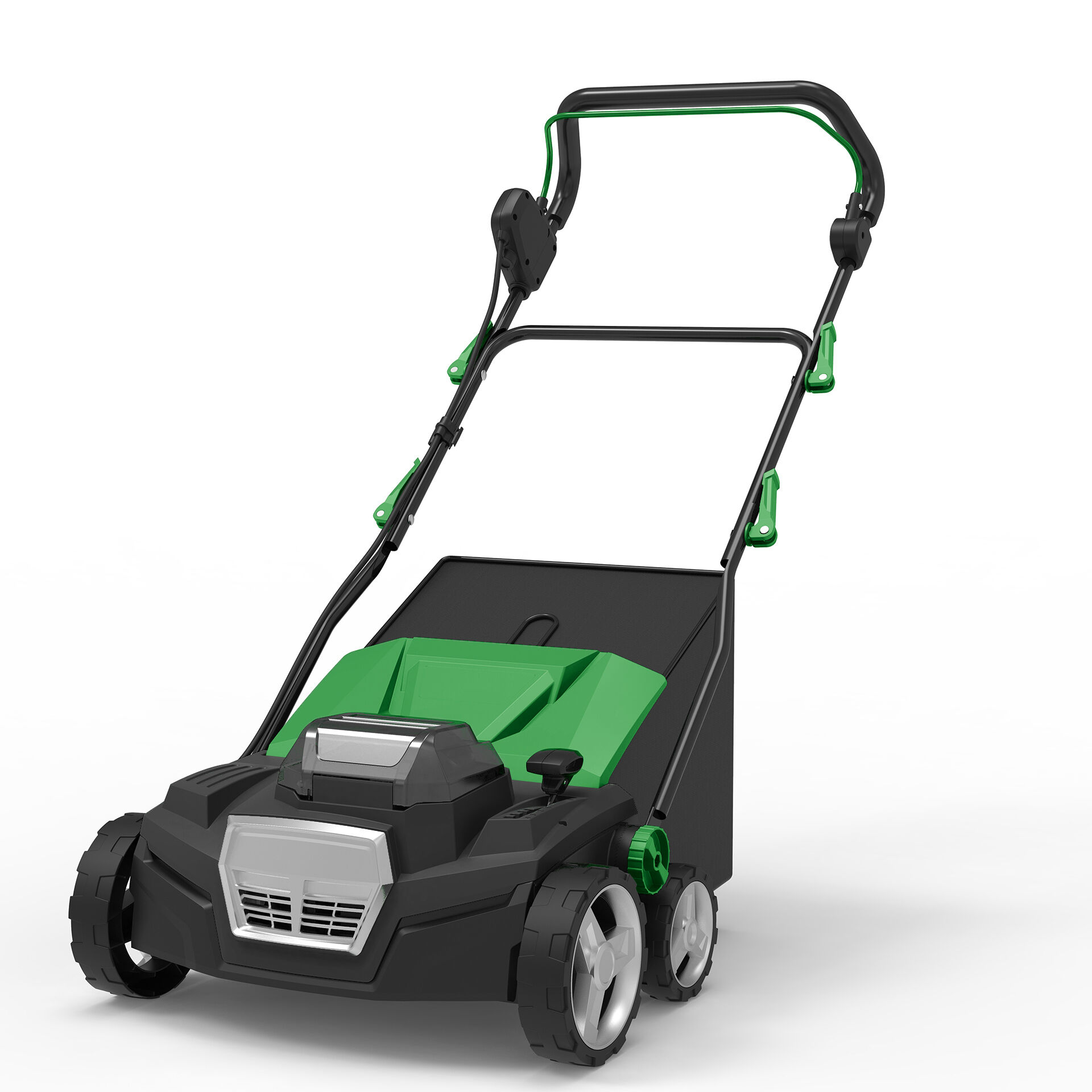 The Cordless Raker & Scarifier is a high-performance, versatile lawn care tool featuring a dual-battery system, adjustable working depth, and a robust design for efficient soil aeration and debris collection.
