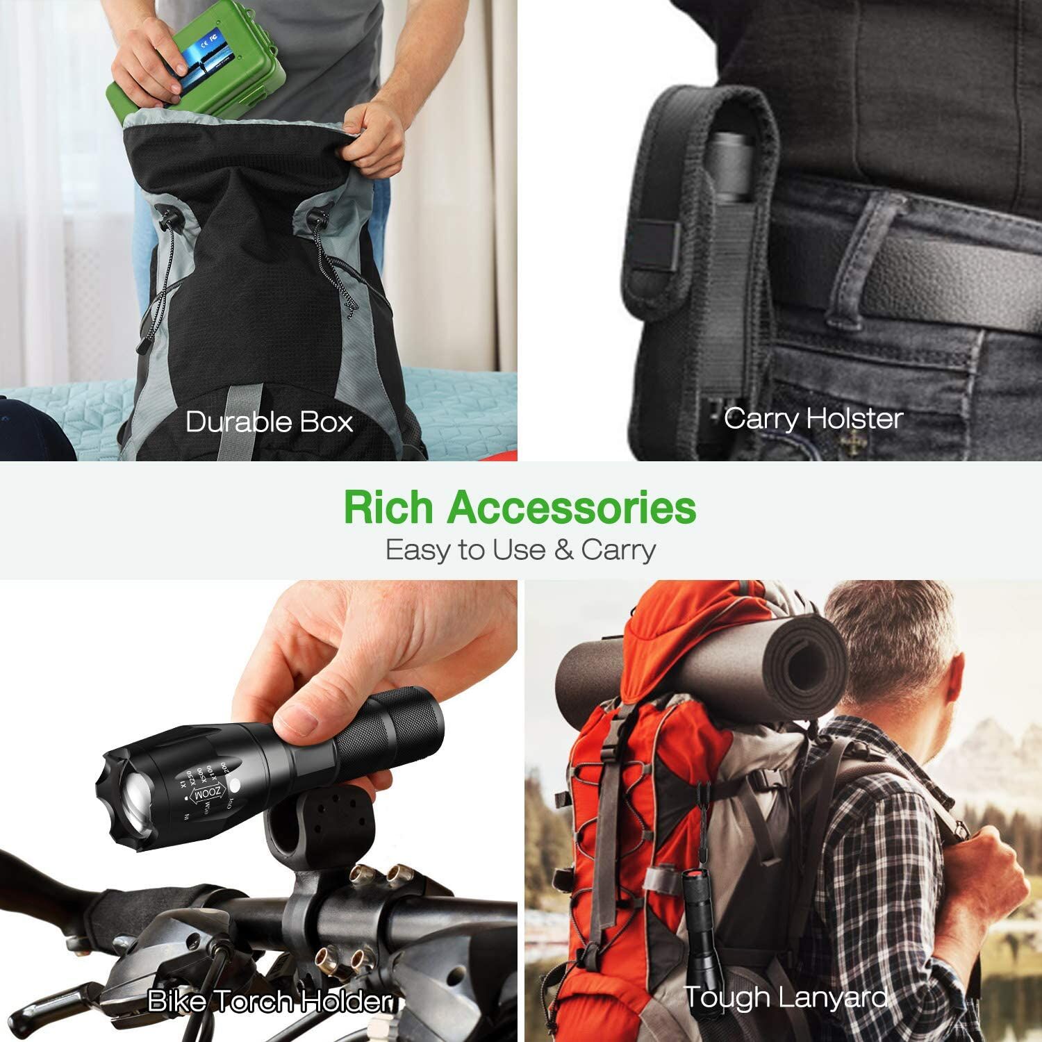 Diseño práctico: Dispone de varios modos para satisfacer diferentes necesidades; el enfoque se puede ajustar y el haz se puede ampliar o reducir para iluminar áreas extensas a corta distancia o para un haz compacto a larga distancia. Ideal para repartidores que buscan números de casas a distancia por la noche.