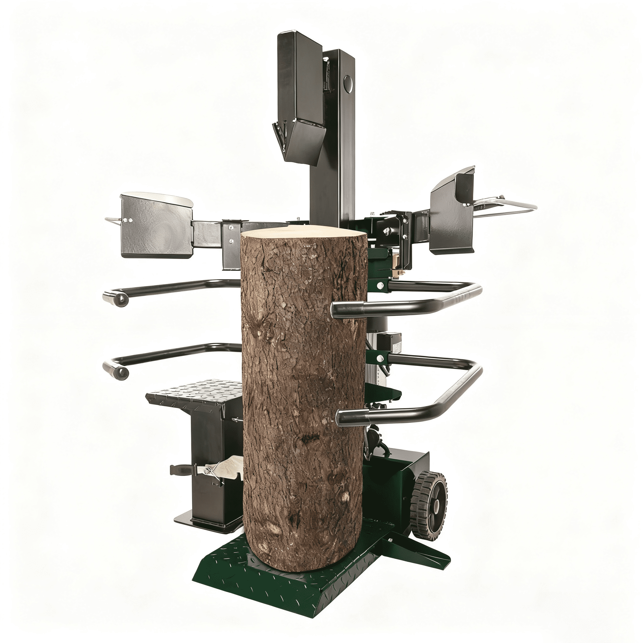 Fácil movilidad y manejo: A pesar de su robusta construcción, el kit de ruedas integrado facilita su desplazamiento por el taller, el garaje o el jardín. Su diseño vertical también elimina la necesidad de levantar troncos pesados a la altura de la cintura.