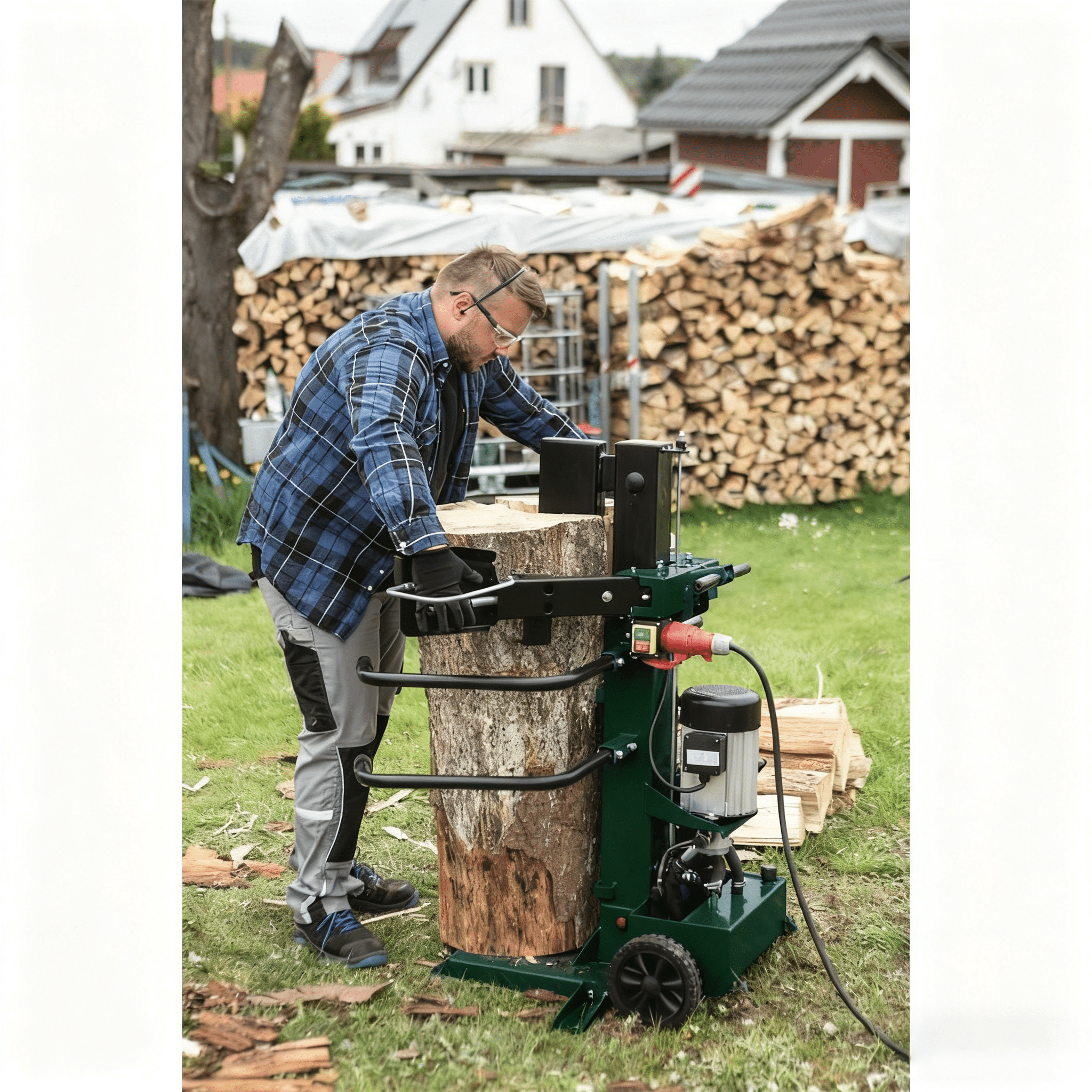 Transforme la ardua tarea de partir leña en una operación rápida y segura con nuestra astilladora de leña eléctrica de calidad profesional. Diseñada para ofrecer potencia y seguridad al usuario, parte troncos resistentes sin esfuerzo gracias a su presión hidráulica de hasta 10 toneladas, lo que la convierte en la solución perfecta para sus necesidades de leña.