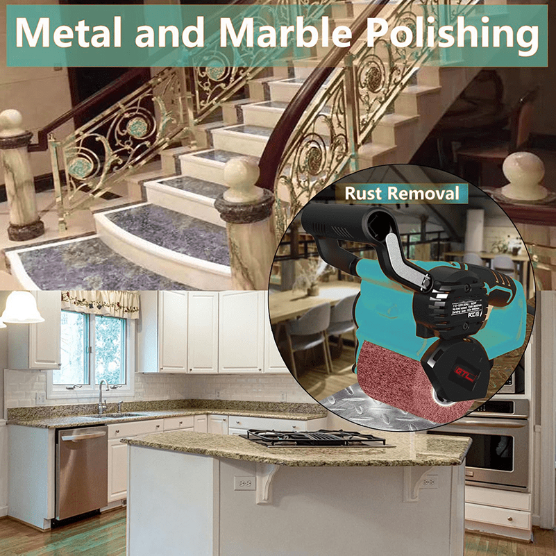 Come with Variety of working wheels and six sandpapers, can help you finish many surface treatment works, like wire drawing, rust removal, texture cleaning and chip removing, etc.