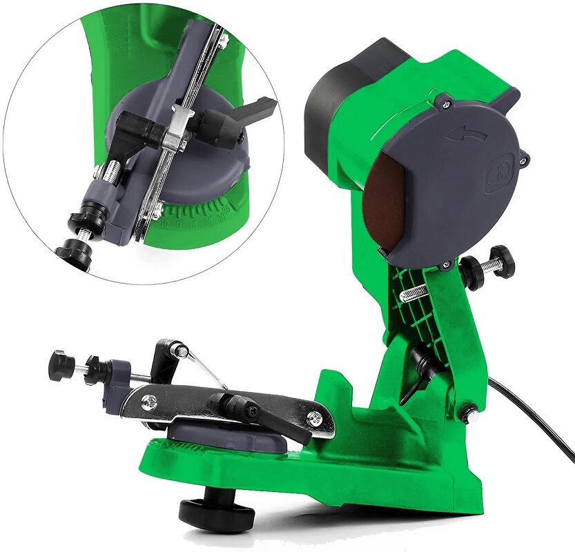 Chainsaw sharpener:constant 5000RPM commercial motor, grinds almost any chain type and size. It ensures you never burn, hot spot or soften your chain
