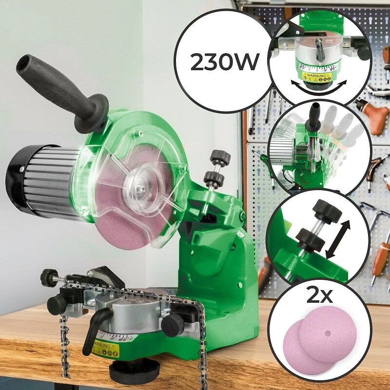 Fácil manejo: Tanto si es nuevo en este tipo de herramienta como si es un experto en la materia, este potente afilador de motosierras le permite afilar fácilmente la cadena en la espada en tan solo unos minutos.