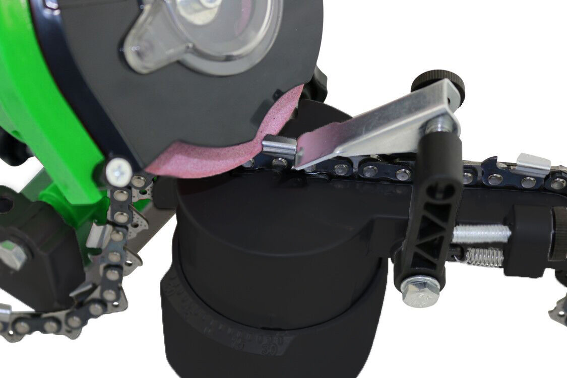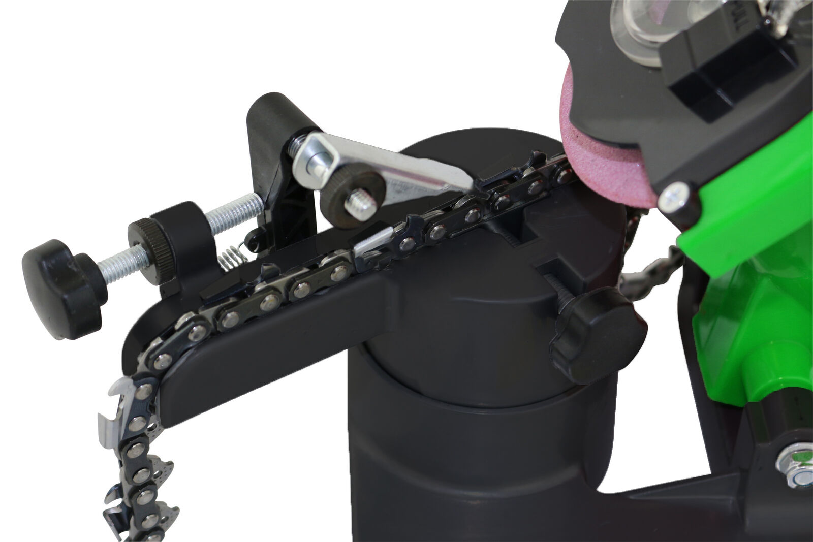Professional chainsaw chain grinder: Powerful performance with hydraulic assistance. Provides fast, hands-free, automatic vice clamping on the chain