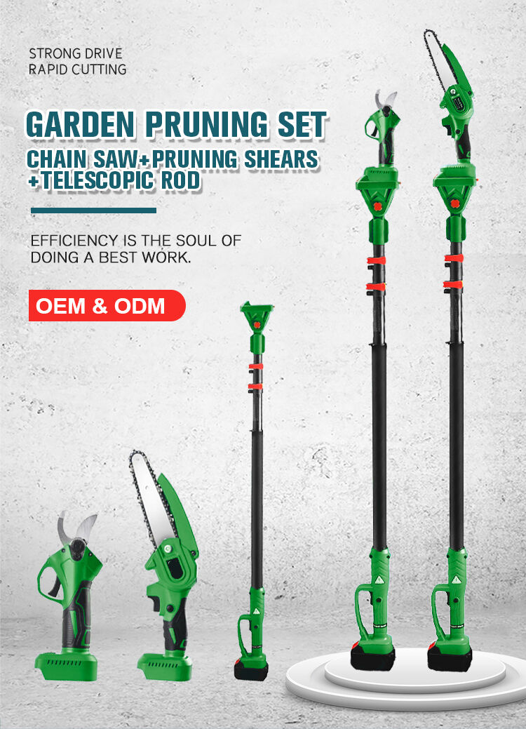 This high-quality garden tool set includes a high branch saw, fruit tree pruner, mini portable chain saw, and aluminum telescopic rod. The high branch saw and fruit tree pruner are perfect for trimming and pruning trees with ease. The mini portable chain saw is compact and efficient for cutting branches, while the aluminum telescopic rod provides reach and stability. All tools are made of durable materials for long-lasting use. Whether you are a professional landscaper or a gardening enthusiast, this set is essential for maintaining your garden or orchard. Upgrade your gardening tools with this versatile and reliable set today!