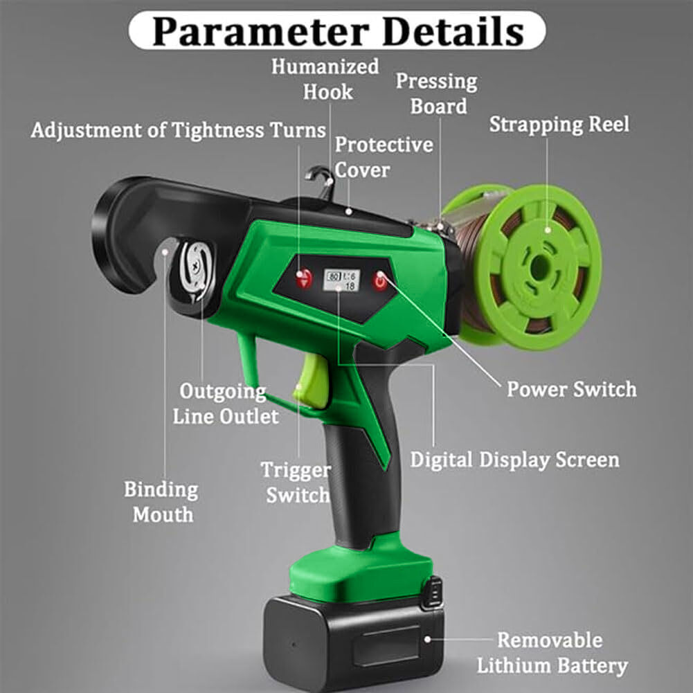 The Electric Vineyard Tying Machine is a high-efficiency, portable, and easy-to-use agricultural tool that significantly speeds up vine tying, saving farmers time and effort. Its gentle operation protects delicate crops, while its adjustable settings and wide applicability make it versatile for various vine crops and suitable for both home and commercial use.