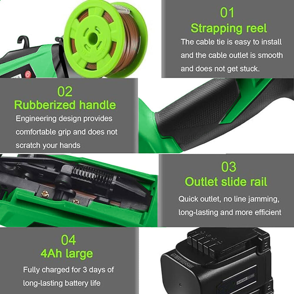 REBAR TYPING TOOL: The rebar tying tool kit has strong power, powered by rechargeable 2000mAh lithium battery, light weight, and convenient without external power. 3-5 times less labor-intensive than manual labor, very convenient for your use.